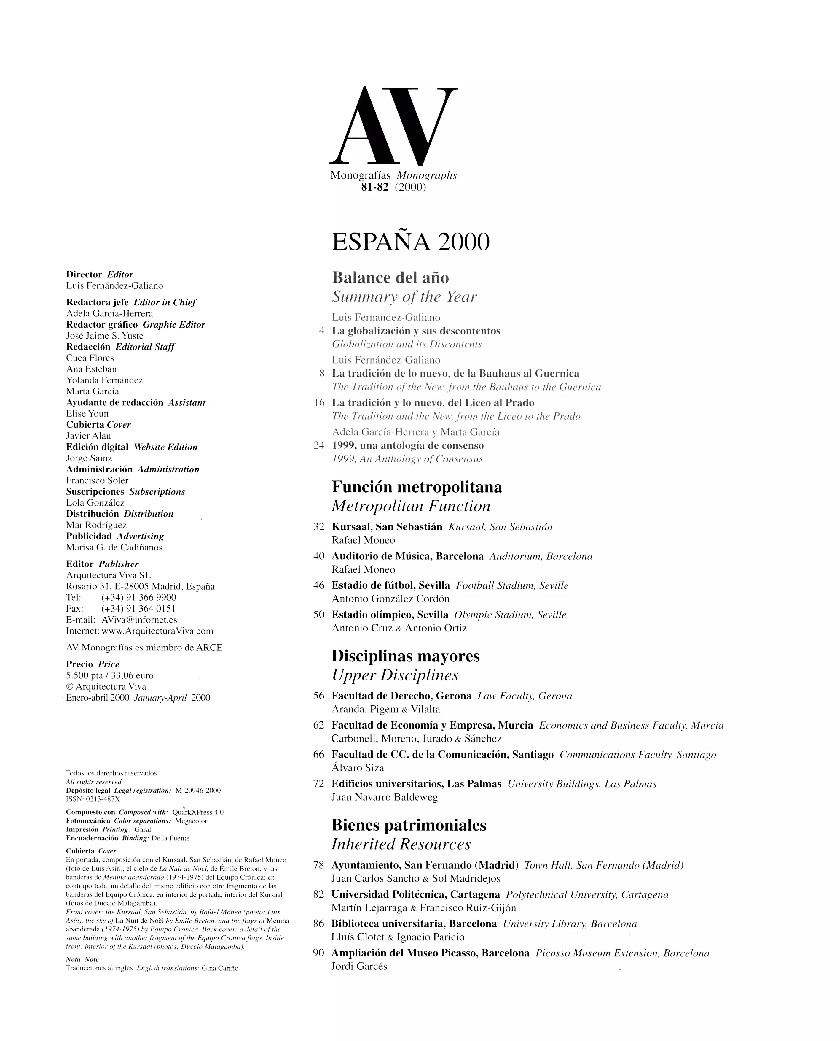 Under the sign of globalization, 1999 saw the energetic boom of the American economy dampening the debut of Europe’s single currency, the timid recovery of Japan and the vigorous breakthrough of China, while the decomposition of Russia and the old socialist bloc was sprinkled with Balkan and Caucasian wars, Latin America swayed to the populist temptations of Chiapas or Chávez, and sub-Saharan Africa continued to fall in a black hole of misery and AIDS. And in this torn world (where, ten years after the disappearance of the Berlin wall, military, economic and cultural leadership is entirely in the hands of a single power, which even serves as a reticent venue for challenges to its hegemony such as that staged in Seattle), architecture still had its most stimulating experimental laboratory in Europe. Nourished by the polarization between Swiss and Dutch, European architecture wrote the year’s most brilliant chapters. American architects with a greater cultural and artistic vocation continued to come to the old continent for the receptive environment they do not alwaysf ind in the United States, and the most relevant debates of American universities revolved around European episodes such as situationism or Team X: exercises on historical memory to which Weimar’s turn as culture capital contributed the inevitable revision of the legacy of the Bauhaus, that fountainhead of modernity we still feed on.