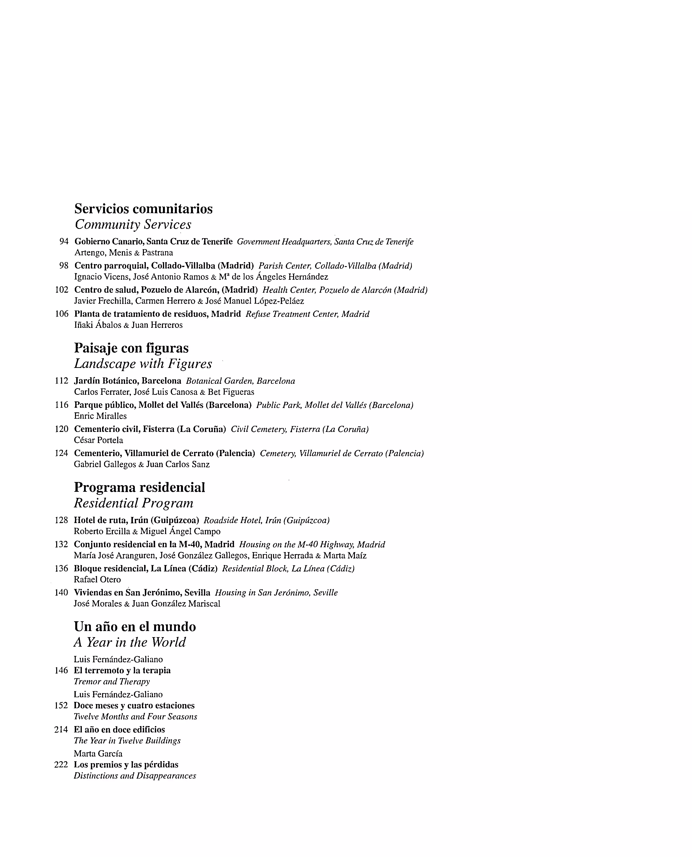 But in Spain not all was good news, and December closed with the end of the ETA truce, after a fourteen-month impasse in in terrorist actions, resituating the Basque Country in a convulsive landscape unworthy of the Guggenheim and the Kursaal. While the wounds of Ireland healed up, and the progress of peace-making in Palestine allowed Aznar to spend Christmas Eve with Arafat in Bethlehem, the sores of Kosovo and the splintered fracture of Chechnya remained open, undermining the perpetual peace of the global market with the demagogy of facts. A placid peace broken in Seattle by a Woodstock of solidarity determined to remind the world that the greater part of humanity is marginalized by the economic market, the political market and the symbolic market; marginalized by liberal capitalism, representative democracy and the media; and marginalized, too, by that phenomenon of culture and spectacle we are used to call architecture.