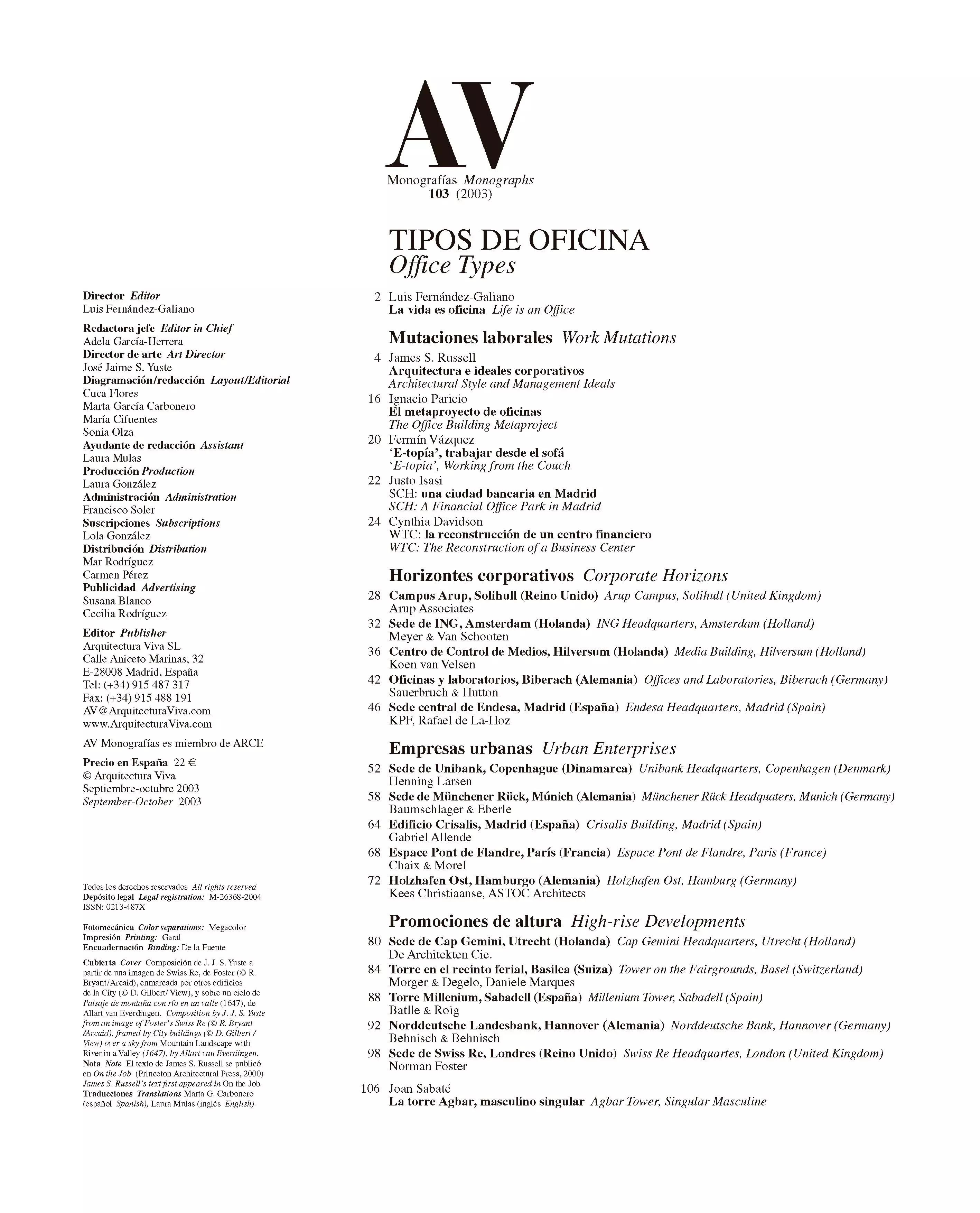 Paradoxically, the uniformity of administrative space has had to coexist with the heterogeneity of its packaging, which has put stylistic resources at the service of business differentiation, reducing architecture to a communication and marketing device. Meanwhile, the main dilemma of corporations continues to lie between the urban skyscraper and the suburban groundscraper, and the final choice is determined as much by accessibility and safety as by ideological and symbolic reasons: there are office parks conceived as holiday resorts and others resembling military camps; there are social democratic skyscrapers that place leisure areas for their employees at the top, and neoliberal high-rises crowned by the private offices of plutocrats. However, all of them sharply contrast with the fertile and flexible fabric of the small and medium-sized offices that mixed with shops and houses make the city a living organism: this enterprising and resilient tapestry contains the best offices, vital centers of innovation and experiment which make more bearable the stubborn craft of living.