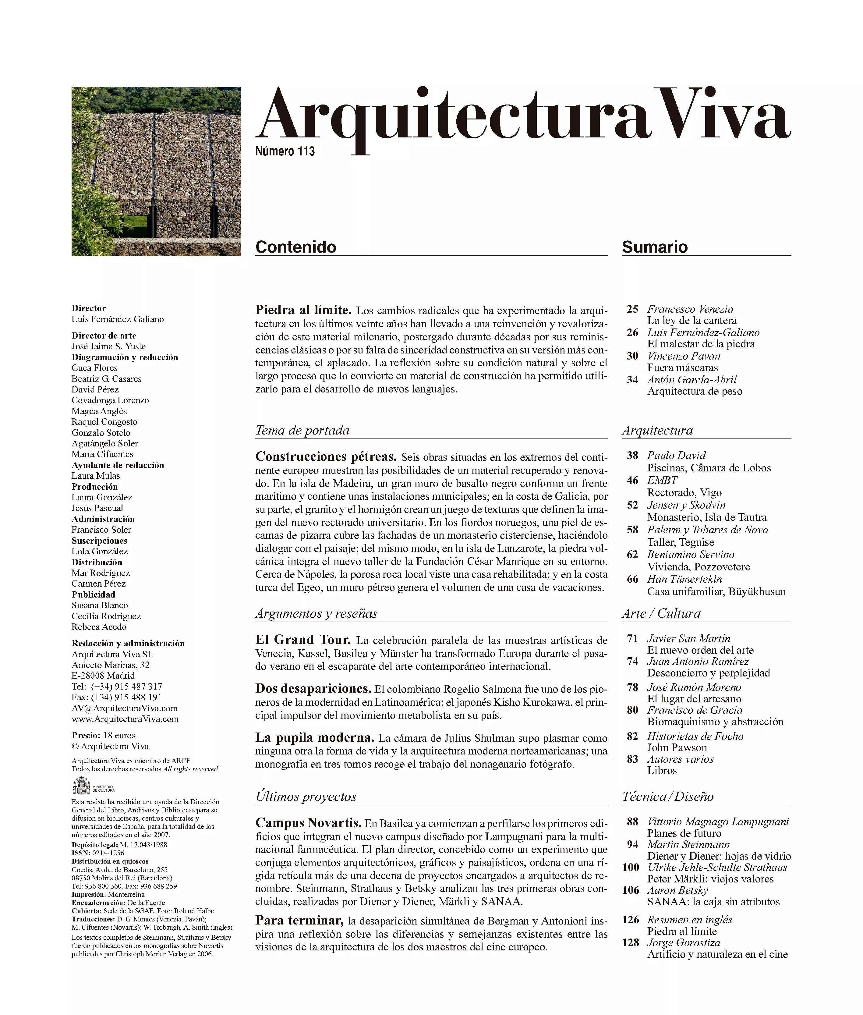 Stone at the Edges. The radical changes that architecture has experienced over the course of the last twenty years have prompted the reinvention and revaluation of this millenarian material, deferred during decades for its classical reminiscences or for its lack of constructive honesty in its most contemporary version, cladding. The reflection upon its natural qualities and upon the long process that manages to transform it into a building material has permitted its use for the development of new languages.