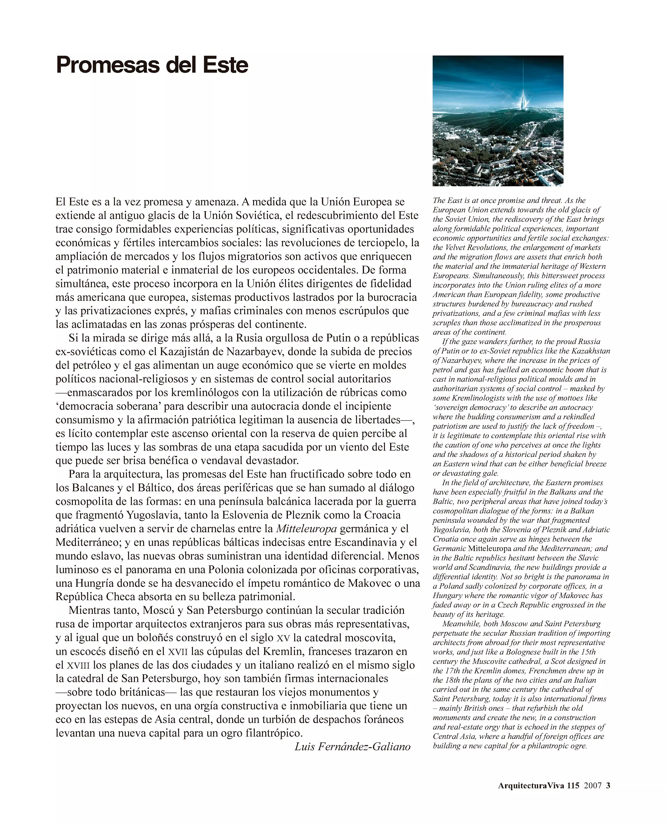 The East is at once promise and threat. As the European Union extends towards the old glacis of the Soviet Union, the rediscovery of the East brings along formidable political experiences, important economic opportunities and fertile social exchanges