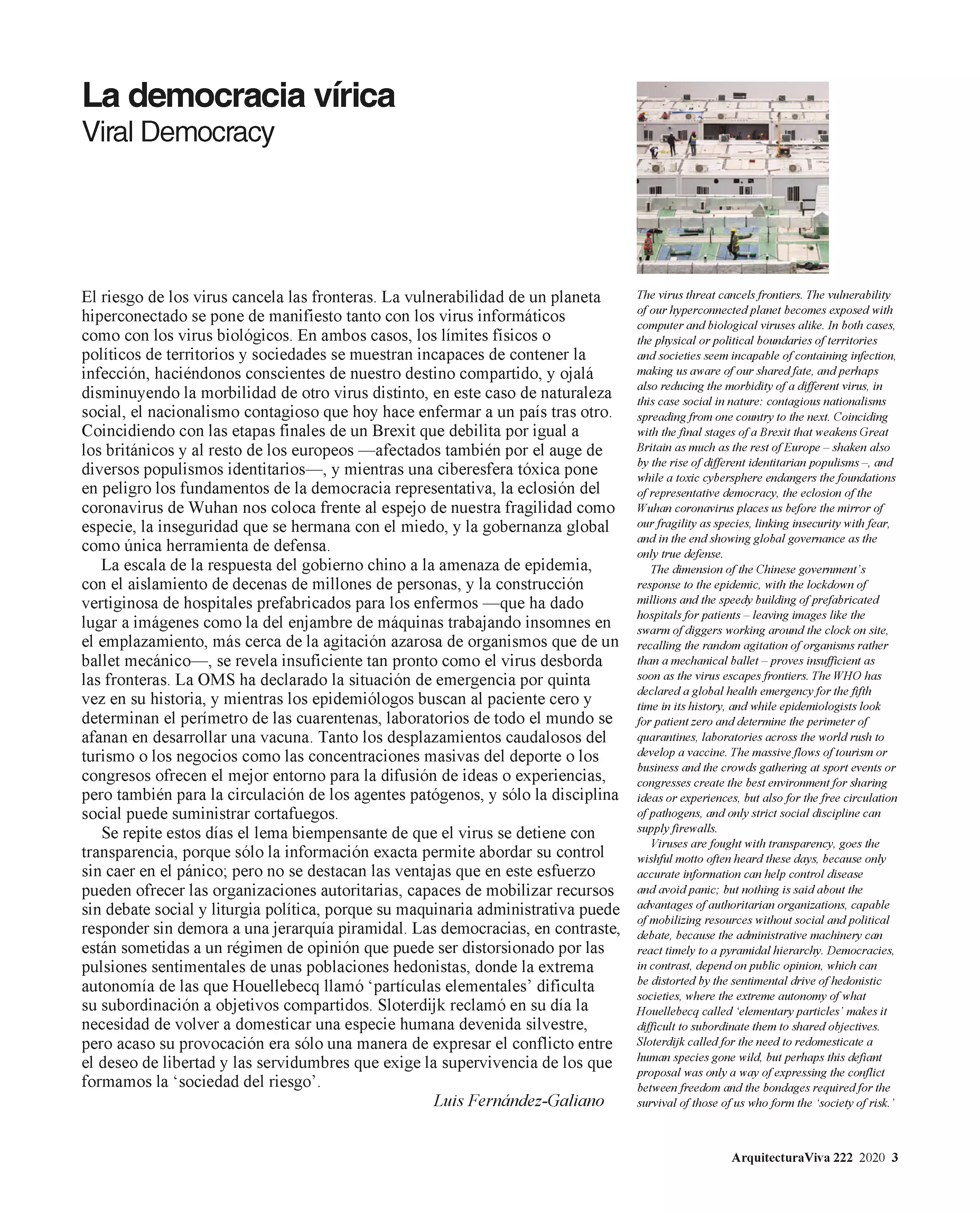 The virus threat cancels frontiers. The vulnerability of our hyperconnected planet becomes exposed with computer and biological viruses alike. In both cases, the physical or political boundaries of territories and societies seem incapable of containi