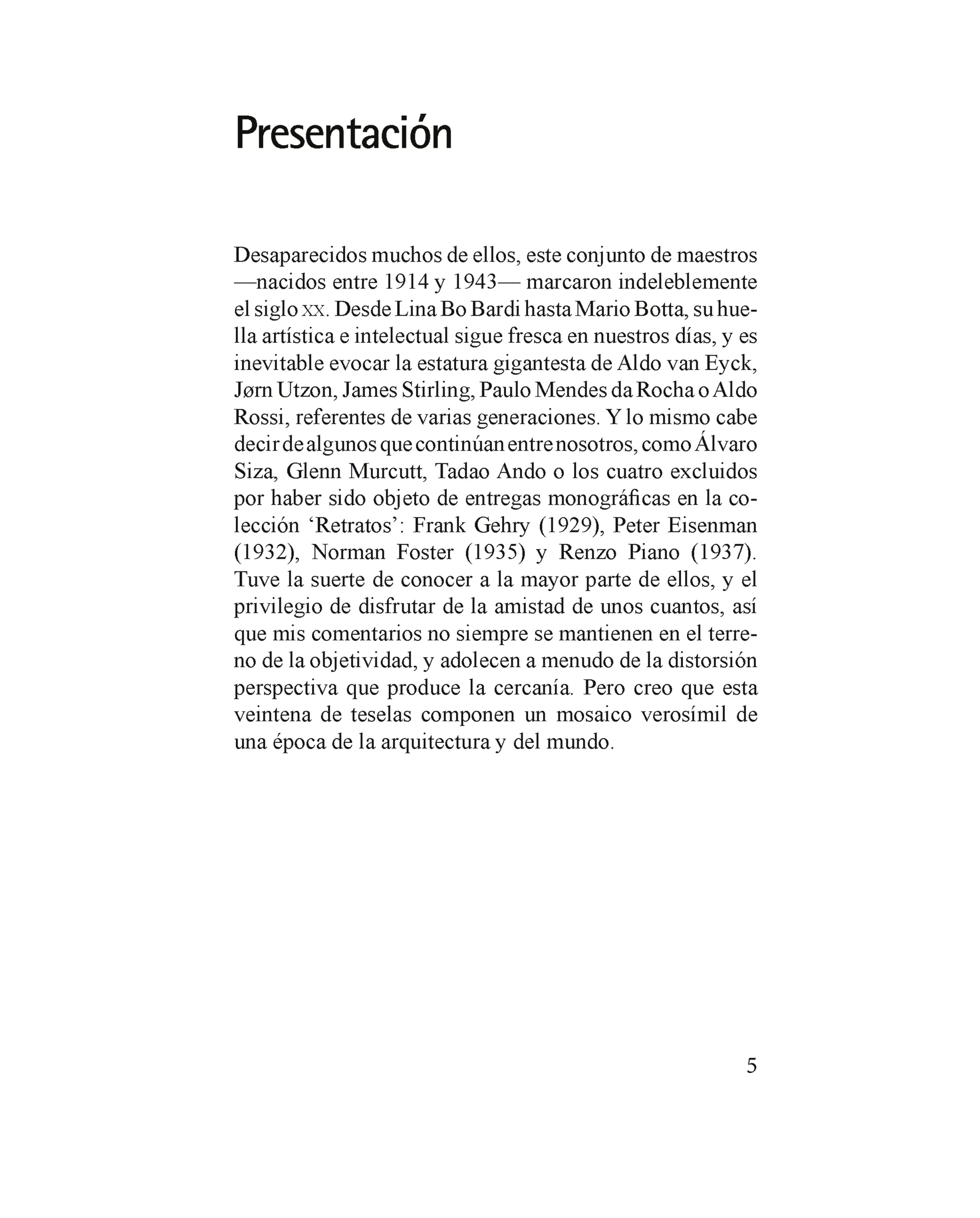 This group of masters – born between 1914 and 1943, most of them now gone – marked the 20th century indelibly. From Lina Bo Bardi to Mario Botta, their artistic and intellectual footprint remains fresh to this day, and it is impossible not to invoke the giant stature of the likes of Aldo van Eyck, Jørn Utzon, James Stirling, Paulo Mendes da Rocha, or Aldo Rossi, gold standards to several generations. The same can be said for those still living, such as Álvaro Siza, Glenn Murcutt, orTadao Ando. Although some names will be missed, these twenty may comprise a plausible mosaic of a period of architecture and the world.