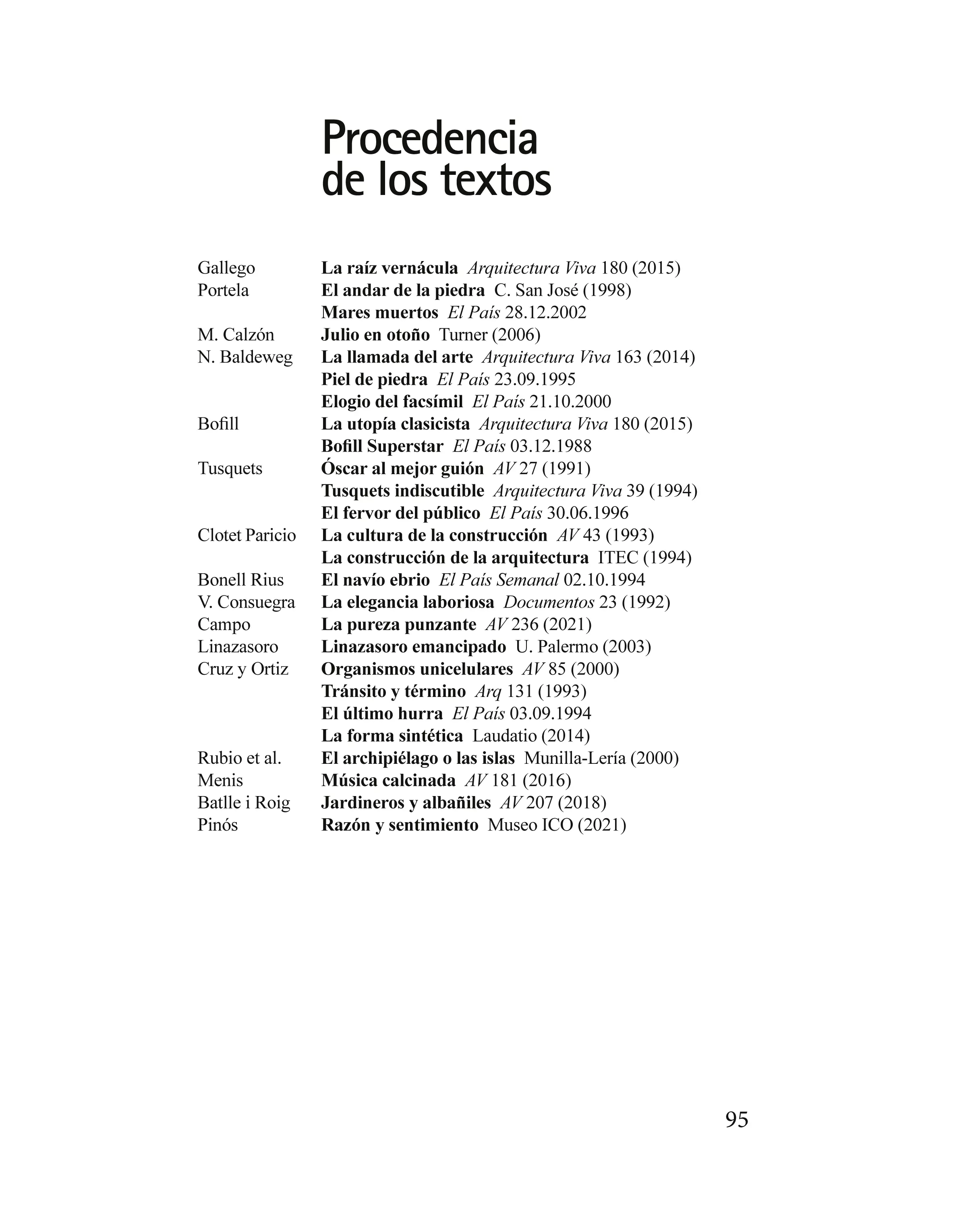 From the Galician architects born during the Civil War, Manuel Gallego and César Portela, to the Catalans who came two decades later, Joan Roig, Enric Batlle, and Carme Pinós, this handful of trajectories reflects the geographic variety that marked the renewal of Spanish architecture, and also the progressive internationalization of its authors. Some have spent a good part of their careers abroad, such as Juan Navarro Baldeweg, Ricardo Bofill, Cruz & Ortiz, and Fernando Menis. But most of them have built their finest works at home, and all were fortunate to come of age professionally and artistically during an exceptional period of social and economic transformation in Spain, an time of opportunity for architecture that was acclaimed way beyond our borders, like never before.