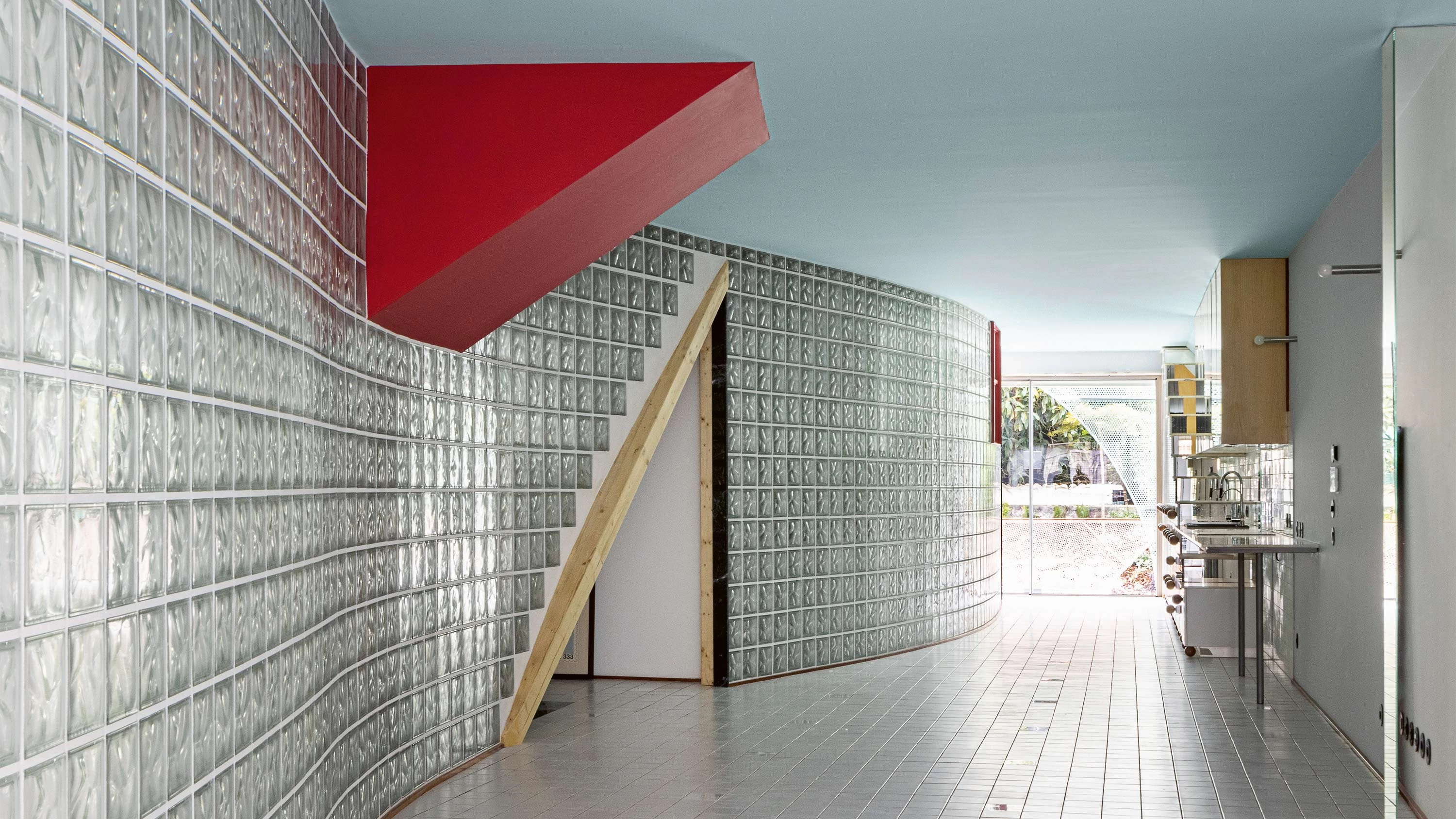 Two curved walls run smoothly through both levels, gently dissociating private and public. A longitudinal axis is highlighted by two metallic masks. Users become actors and spectators...[+]