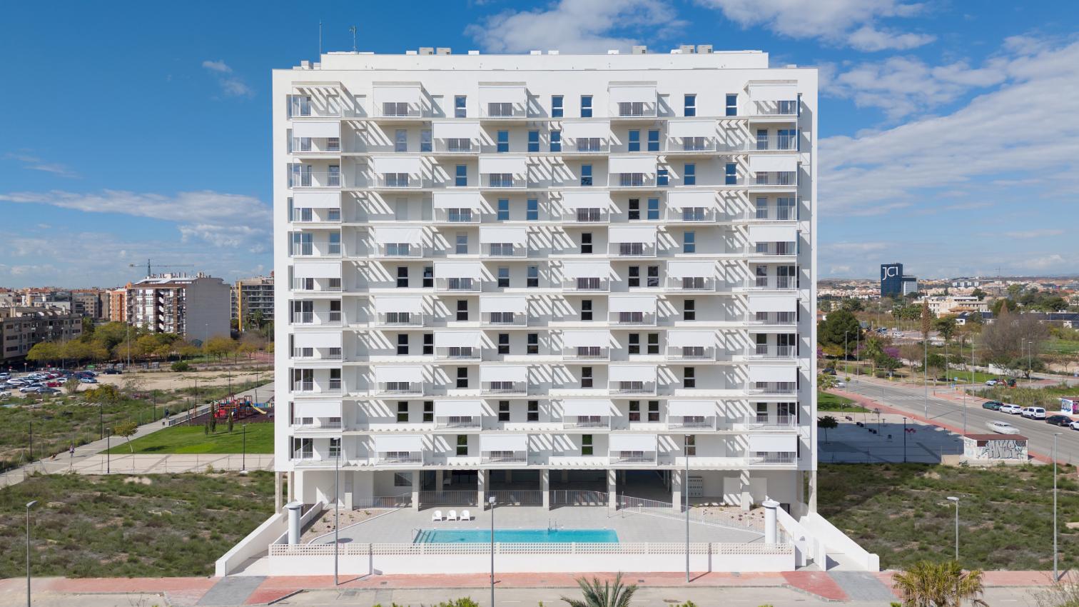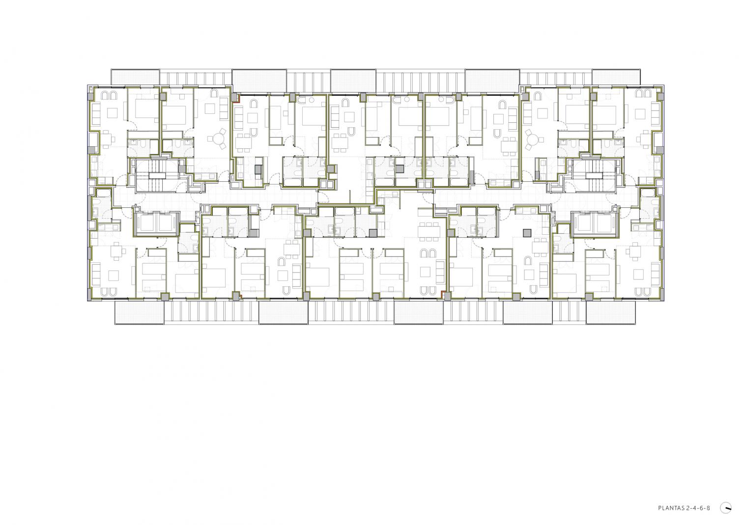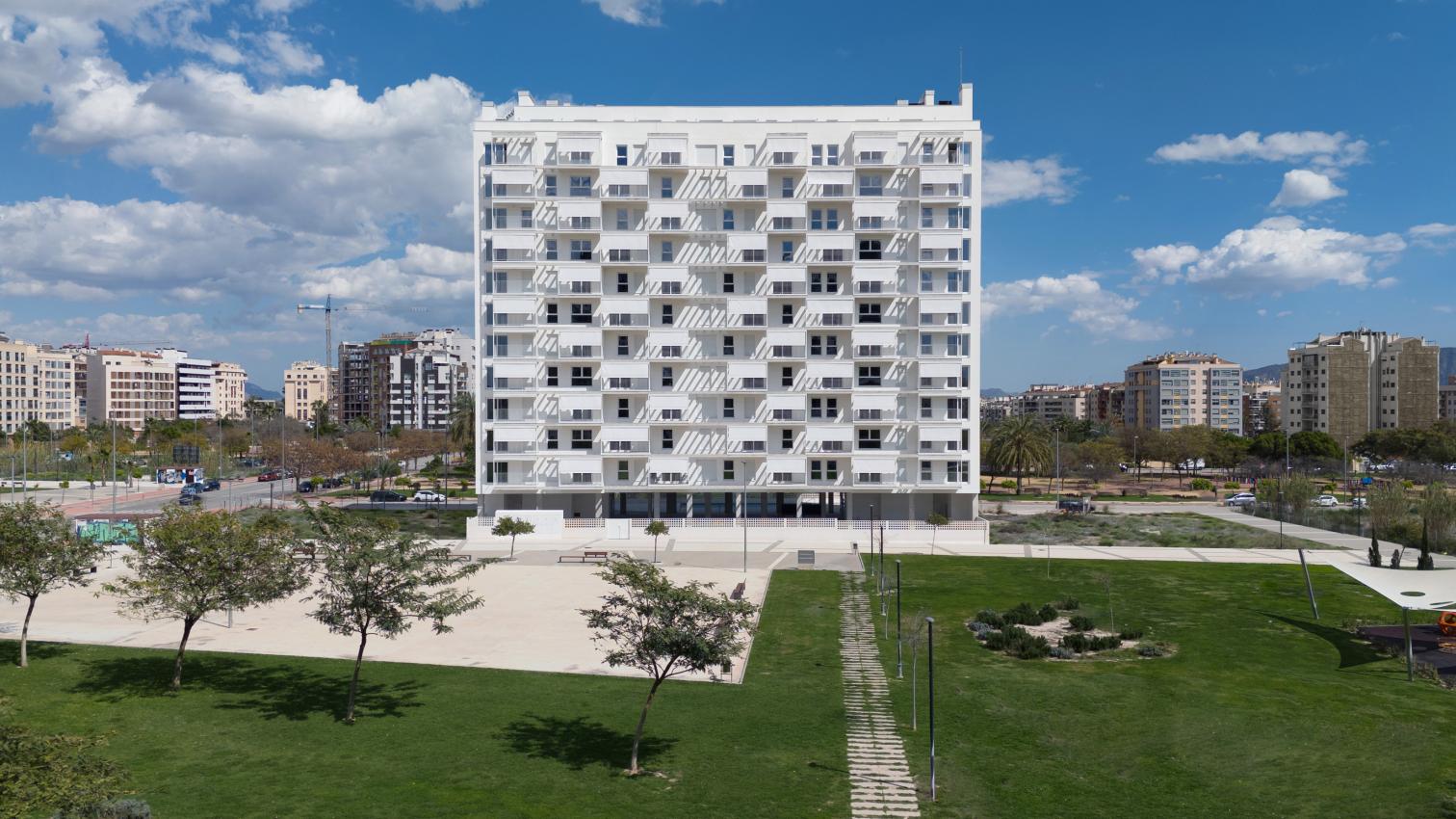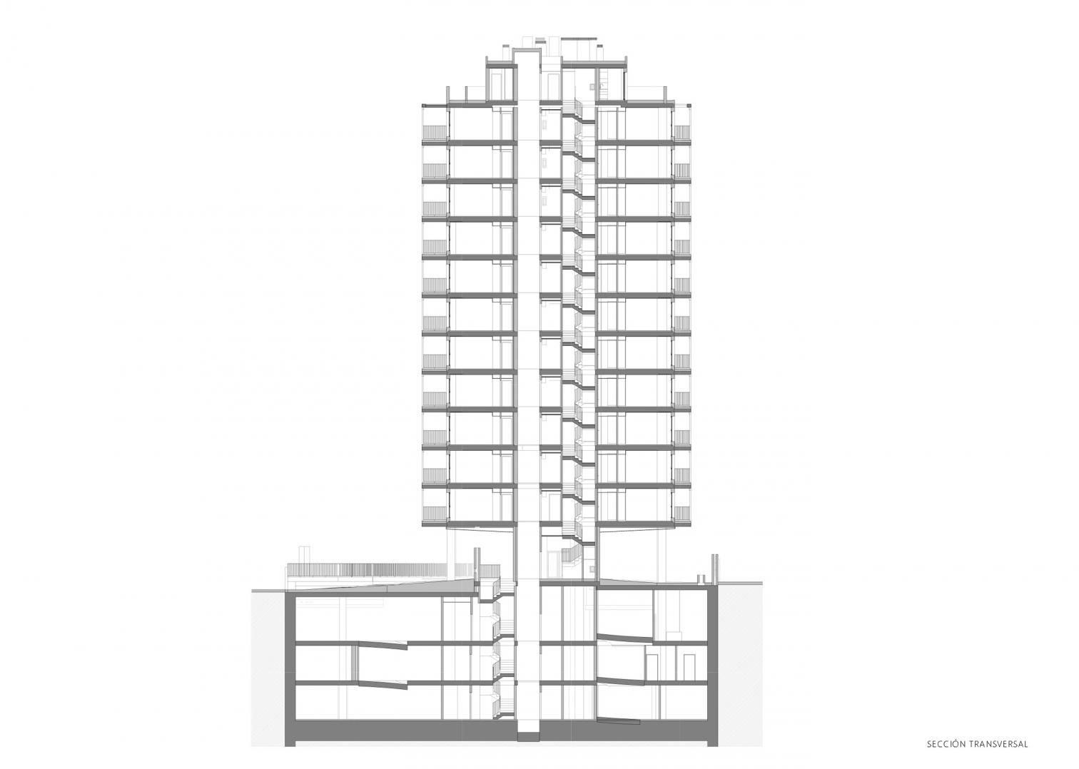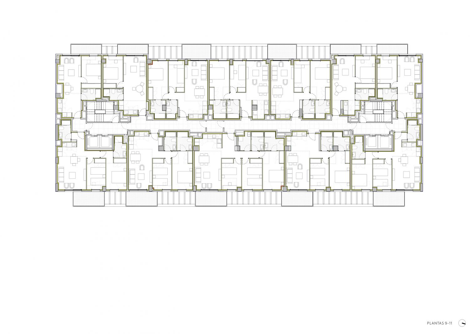 MCEA | Manuel Costoya Estudio de ArquitecturaLocated in Santiago and Zaraíche, a district of the municipality of Murcia, this housing development of 138 units for rent consists of a single building rising twelve floors plus an attic, on the two central plots of a linear property of four. This arrangement makes the building have only two main facades, towards the east and west, which establishes a main axis for the architectural design.