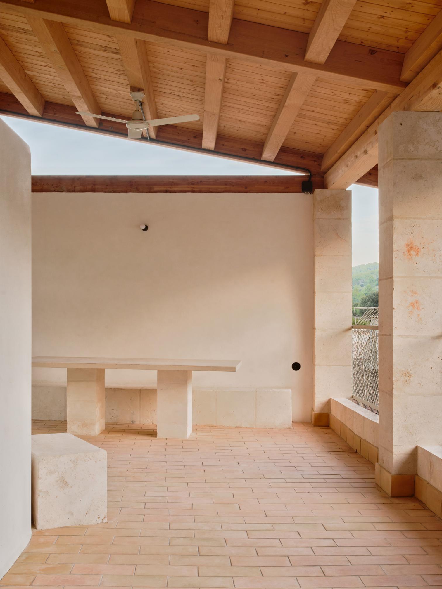 All the units face north and south, following the Esporles stream’s flow, which marks the direction of the predominant winds crossing the Tramontana range. The north facade is highly dissipative and conserves energy through a double wall of thermoclay. The south facade is energy-absorbing and works through inertia and the glazed gallery. With the bioclimatic elements operating correctly, the heating and cooling demand of the building as a whole is zero. Active air conditioning is not required, thanks to the high internal inertia of the homes, achieving differences of up to 20 degree between indoors and outdoors in winter.