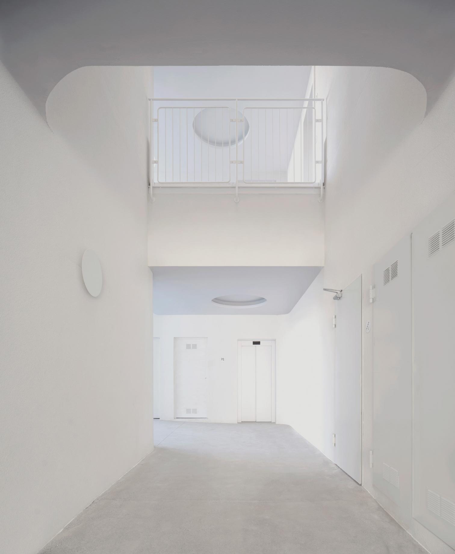 One of the scheme’s defining elements is a prefabricated structure of hollow-core slabs made of prestressed concrete. This system allows an open plan and a flexible layout, thanks to a large-span structrure and a central service core. This configuration frees up the facades, ensuring double orientations that maximize sunlight and natural cross ventilation in all the apartments.