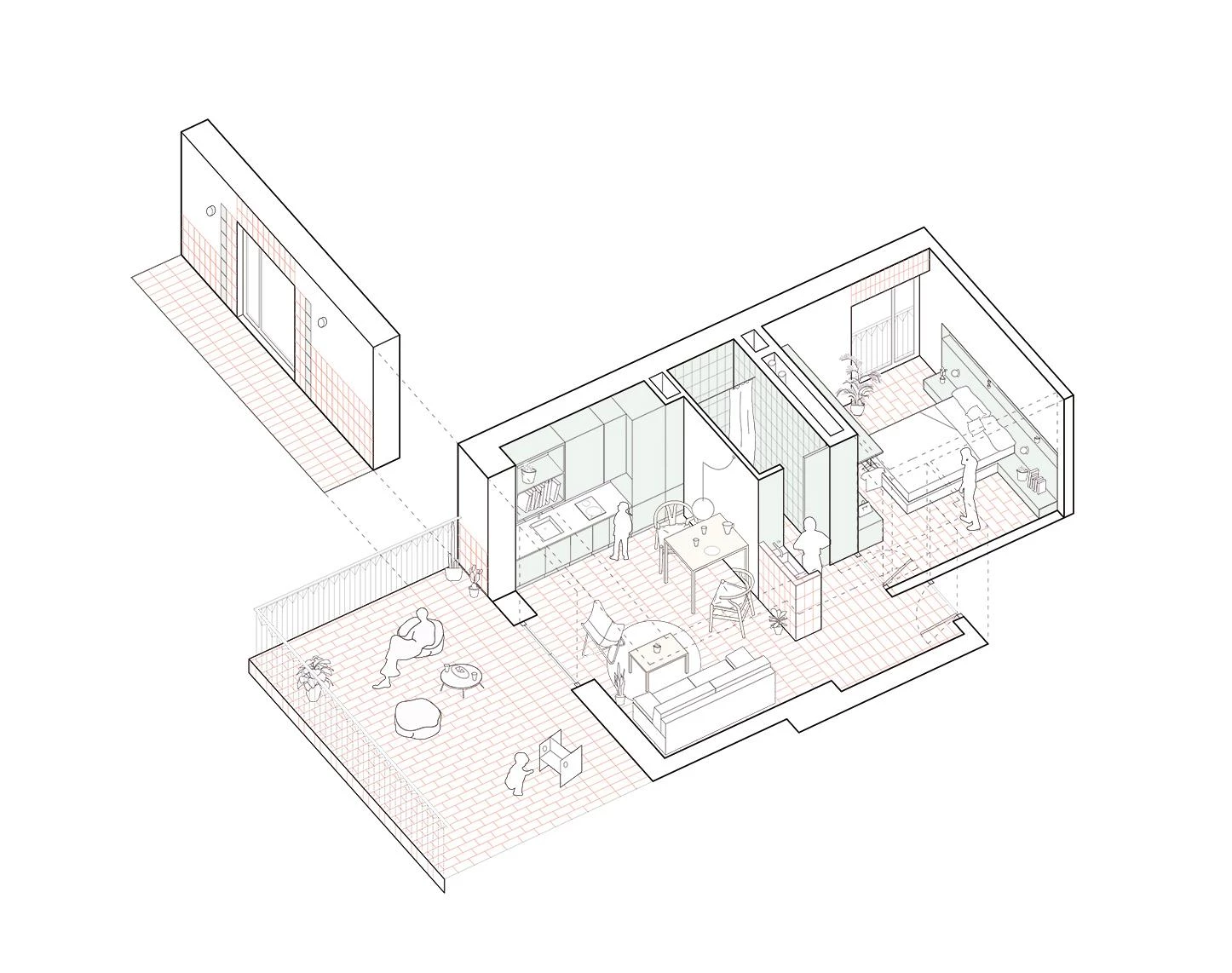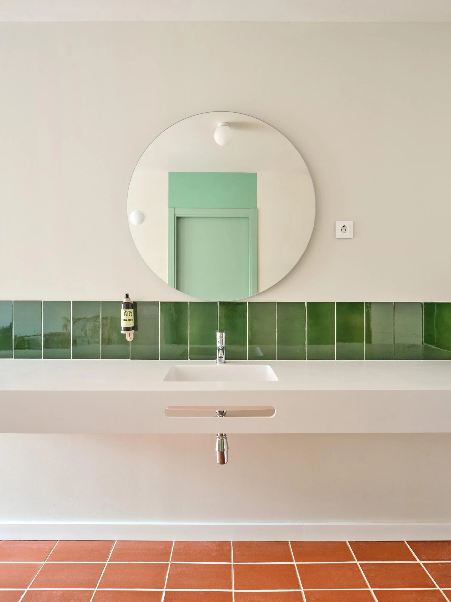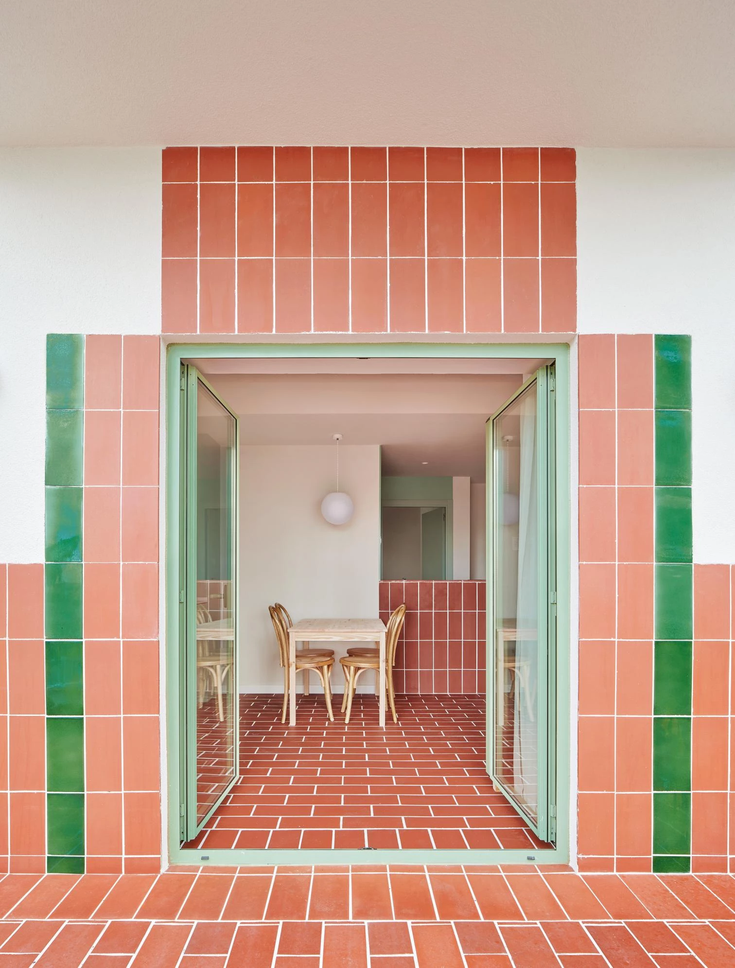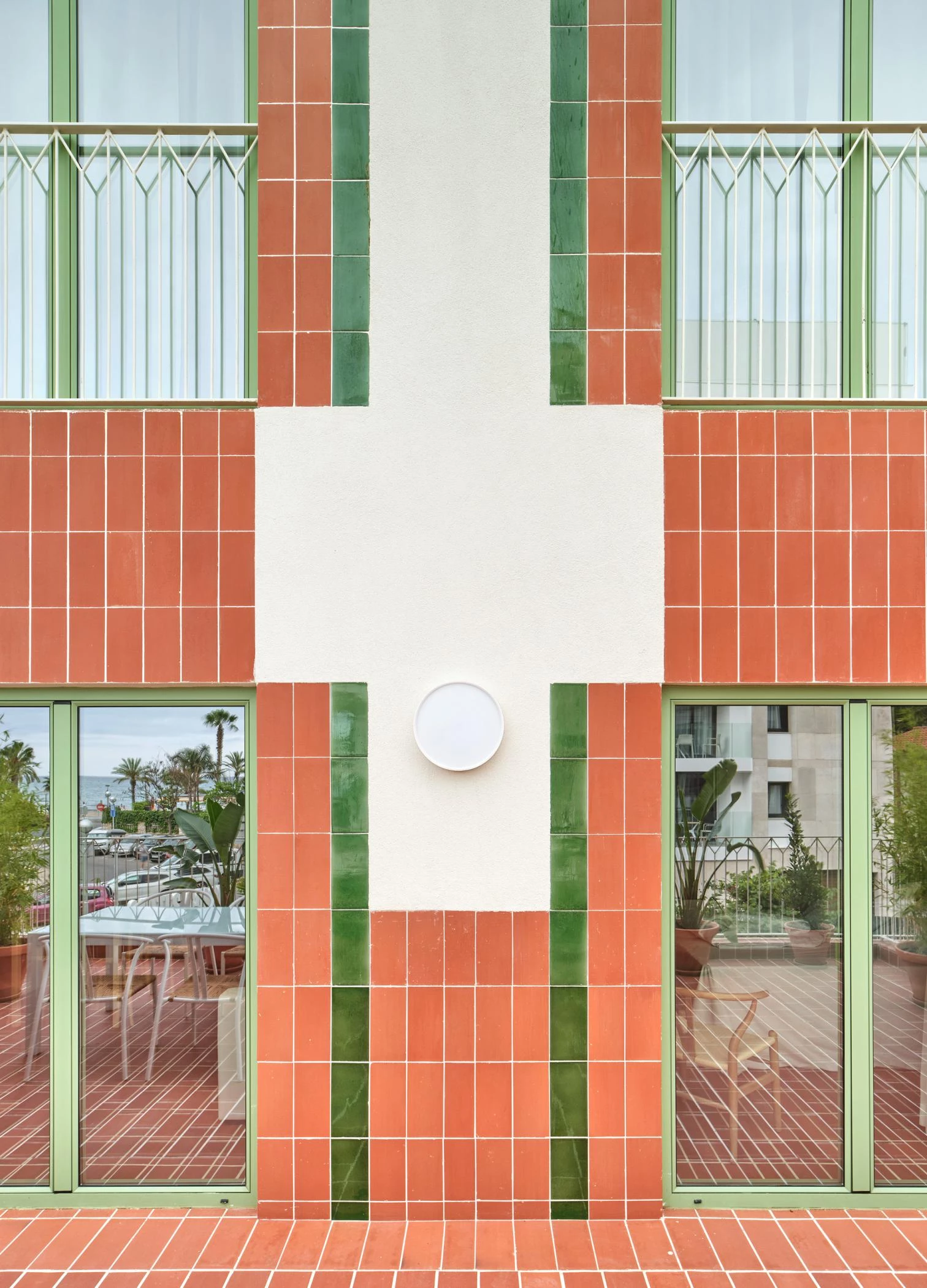Fulfilling technical and aesthetic functions alike, ceramic is used in a single format: traditional rasilla. The tiles – some with a natural finish, others enameled in a green tone – connect the facade to the history of the place, following modernist and 19th-century traditions of summer residences in Salou.