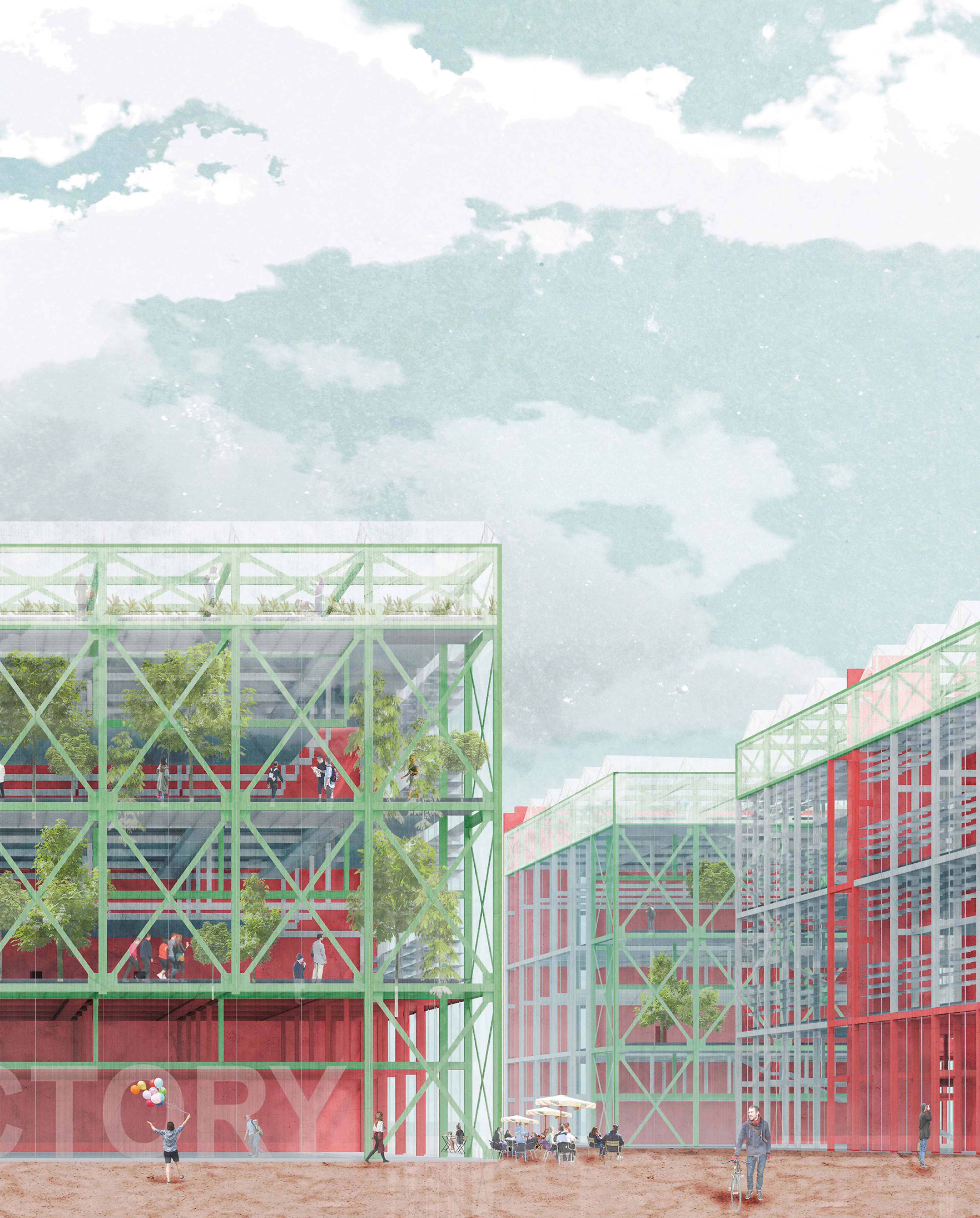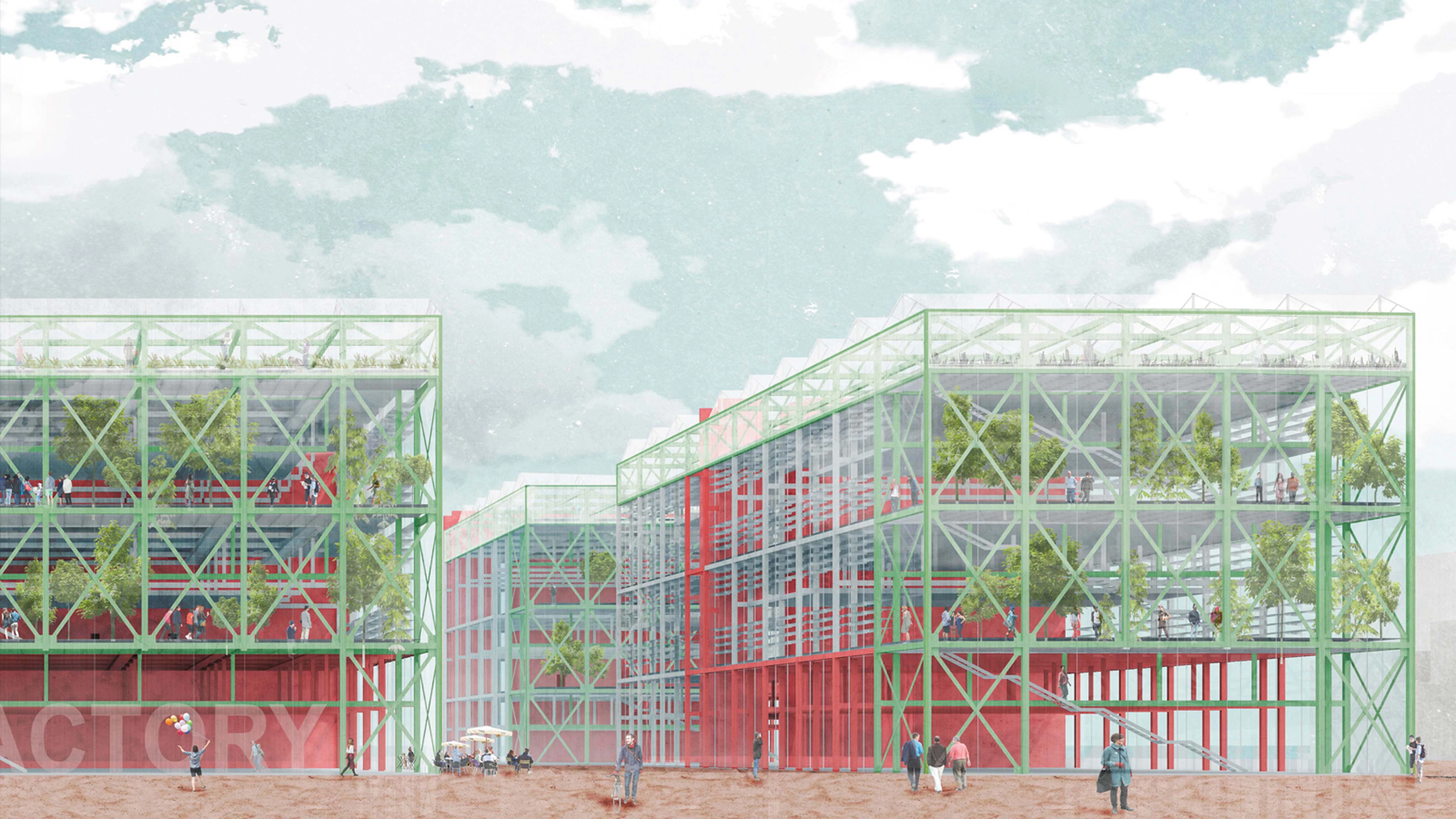 The new industrial type proposed makes the processes visible, minimizes energy costs by making resources more profitable, and adapts to different programmatic needs thanks to the use of two types of structural trays whose location can vary... [+]
