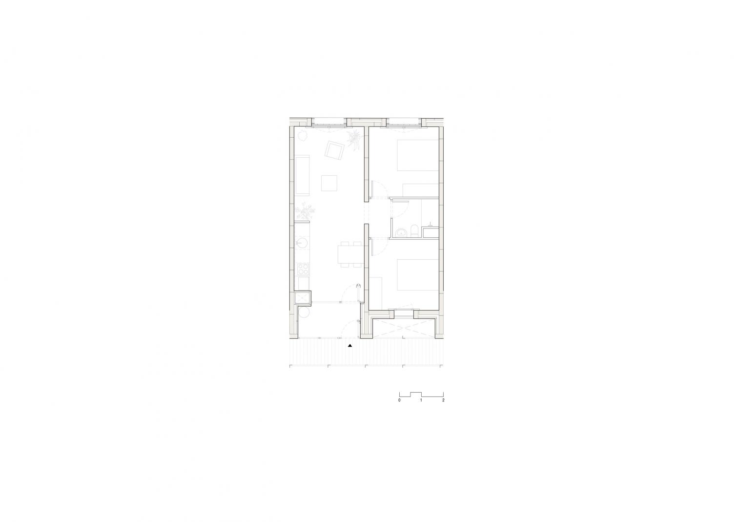 The architectural design fosters community life through interior courtyards and covered walkways, which also facilitate cross ventilation and ultimately ensure thermal comfort. The one- and two-bedroom units face two directions and present efficient layouts, without hallways but with a central kitchen that opens onto the living room. A multifunctional gallery on the southwest acts as a thermal and visual filter, maximizing indoor comfort throughout the year.