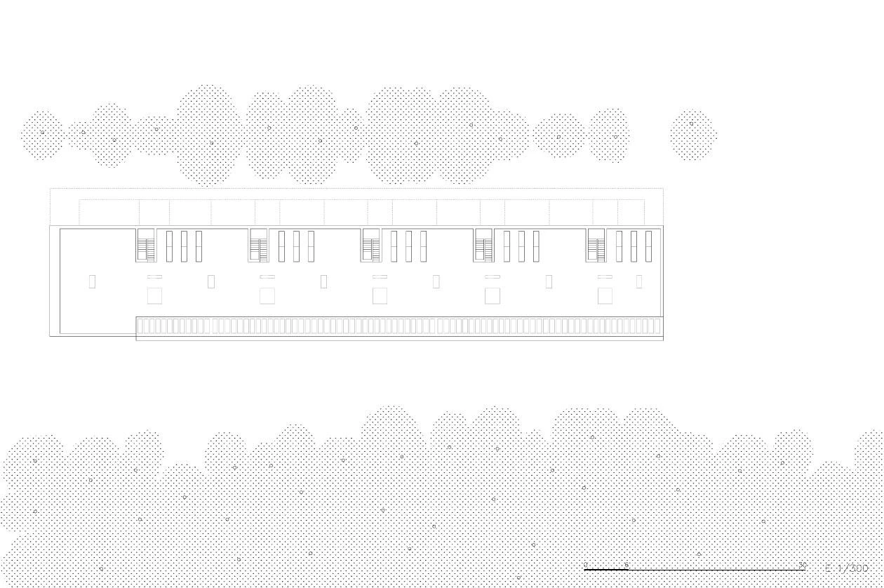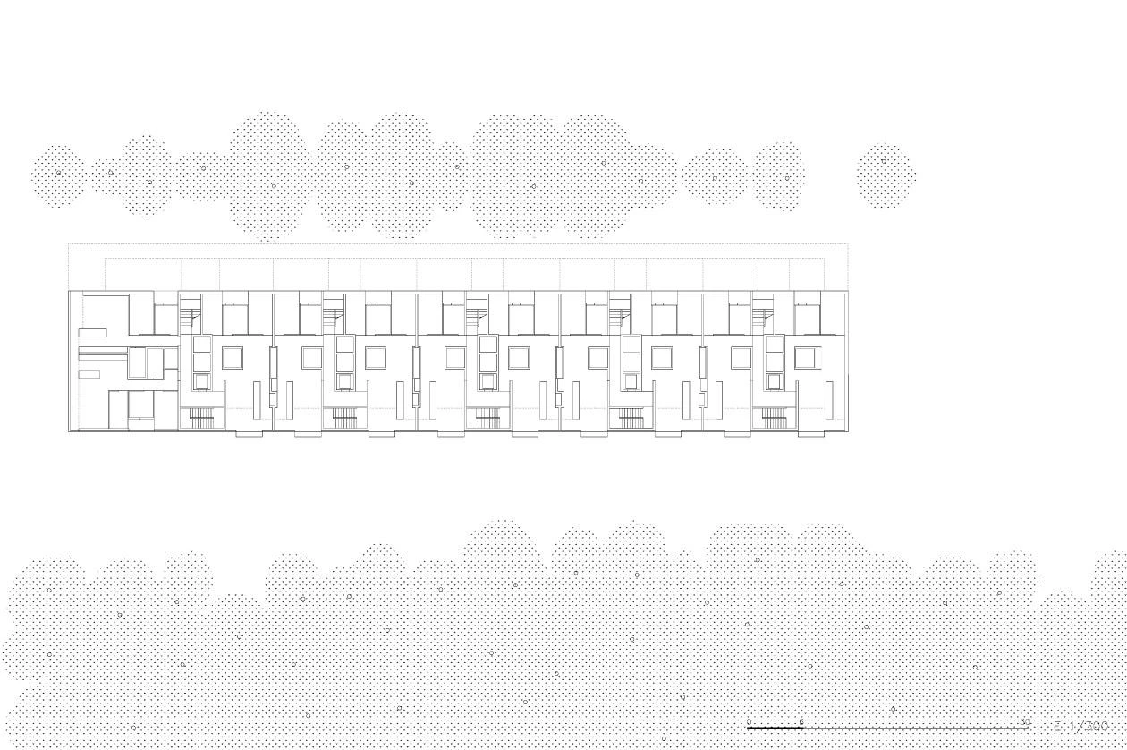 Born out of the Cheap Housing Law of 1929, the Bon Pastor neighborhood went up with 784 one-level homes. Impelled by the Barcelona City Hall's IMHAB (Institut Municipal de l'Habitatge i Rehabilitació), the Bon Pastor Redevelopment Plan involves demolishing these homes and replacing them with apartment blocks for the displaced people to move into. The change of building typology, agreed upon with the residents, offers advantages, including privileged views of the river Besòs, in exchange for the loss of the ground-level community life where homes open out to the street, appropriating it. To restore and preserve something of that lost open-air community life, the new building – containing 54 units in five stories – inserts a series of intermediate spaces between the public space and the homes. On the ground floor, one enters through communal courtyards preceding the lobbies. The apartment levels have large terraces, like outdoor rooms, facing the new park that borders the riverfront. The parking garage is ventilated and has natural lighting, and can thus in future be adapted for other uses.