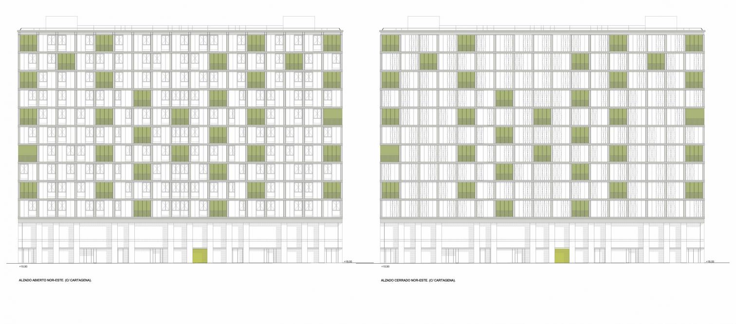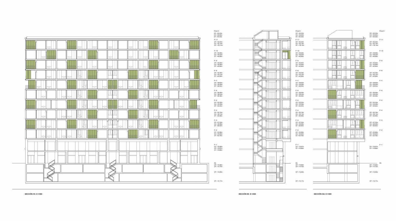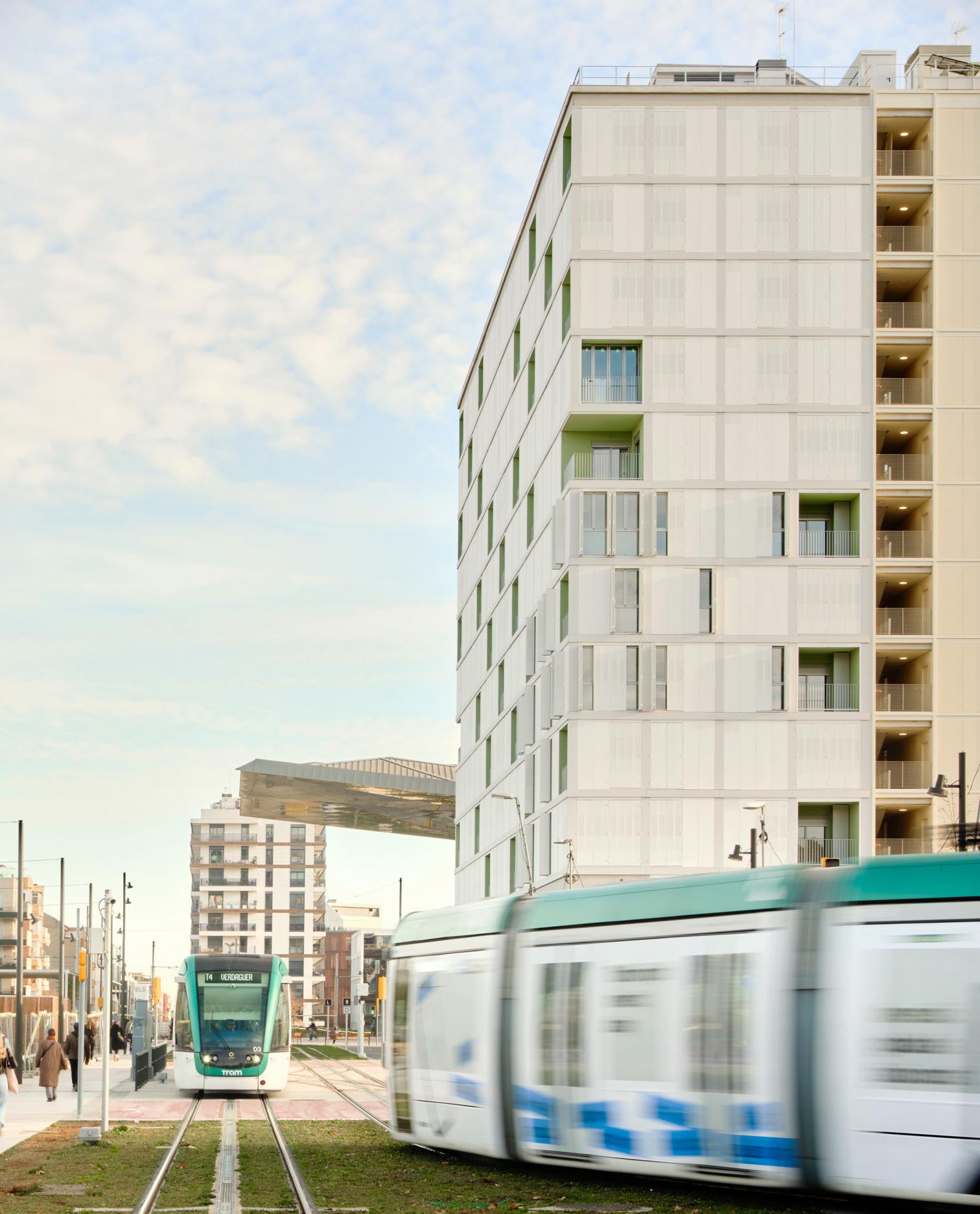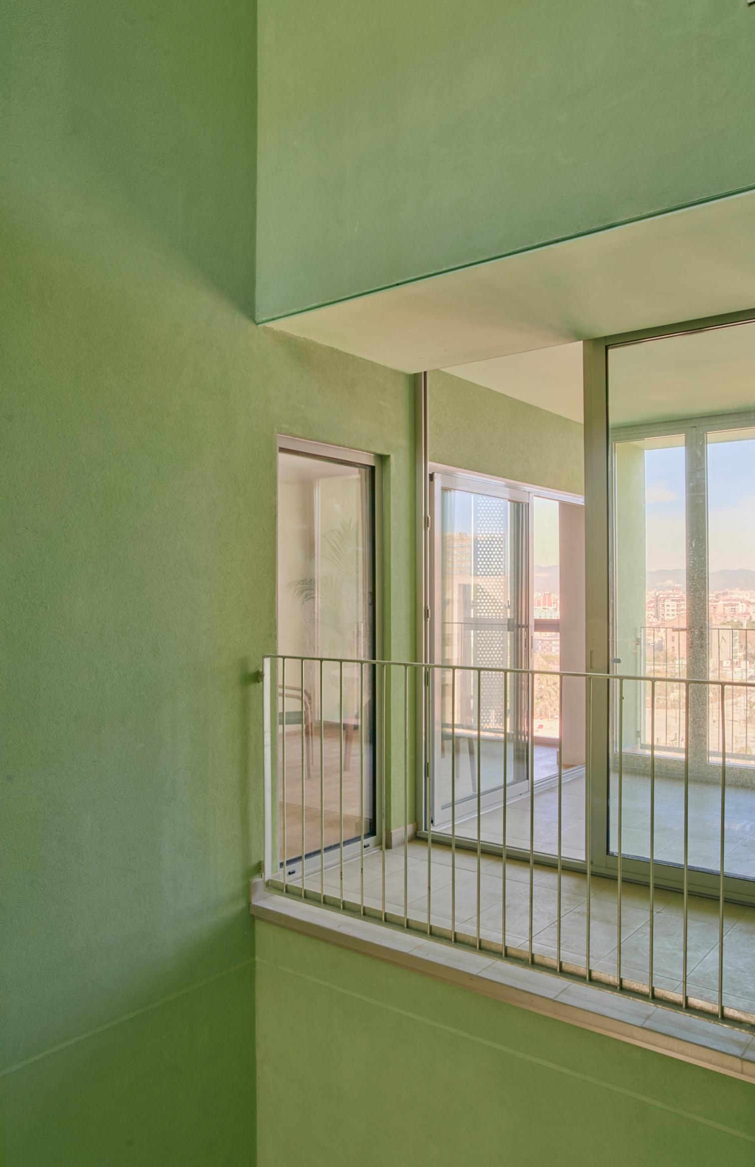 Building D of Illa Glòries is part of an ambitious project promoted by the Institut Municipal de l'Habitatge de Barcelona (IMHAB), which comprises a total of 238 social housing units distributed in four buildings: A (Cierto Studio + Franc Llonch), B (Bayona Valero + Cantallops Vicente + Ensenyat Tarrida + Haz Arquitectura), C (Vivas Arquitectos + Pau Vidal), and D (SV60 / Cordón & Liñán Arquitectos).