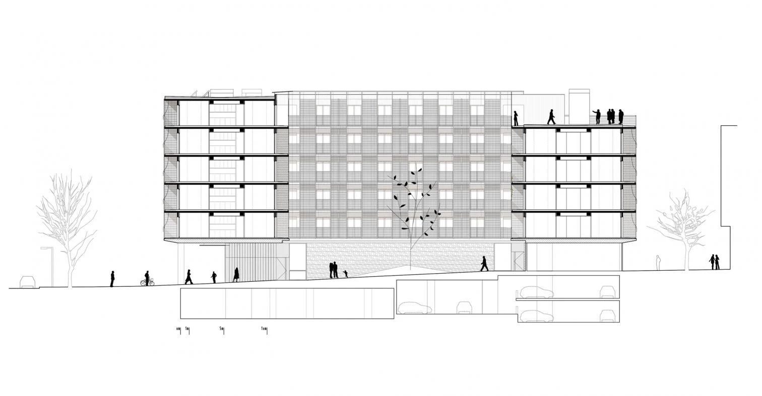 The project consists of 85 social housingunits on a plot previously occupied by the emblematic Cinema Pisa in the city of Cornellà de Llobregat. It is a five-story freestanding building with a wood structure, resting on a ground level with a concrete structure for commercial use and public facilities.