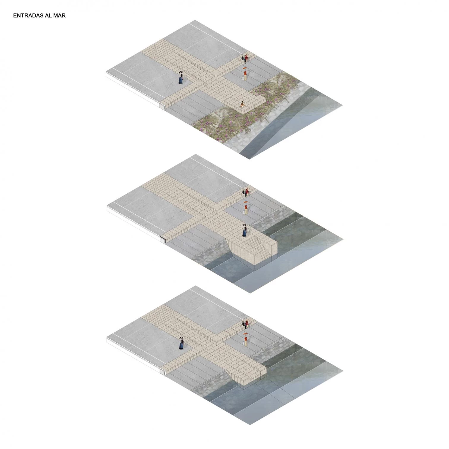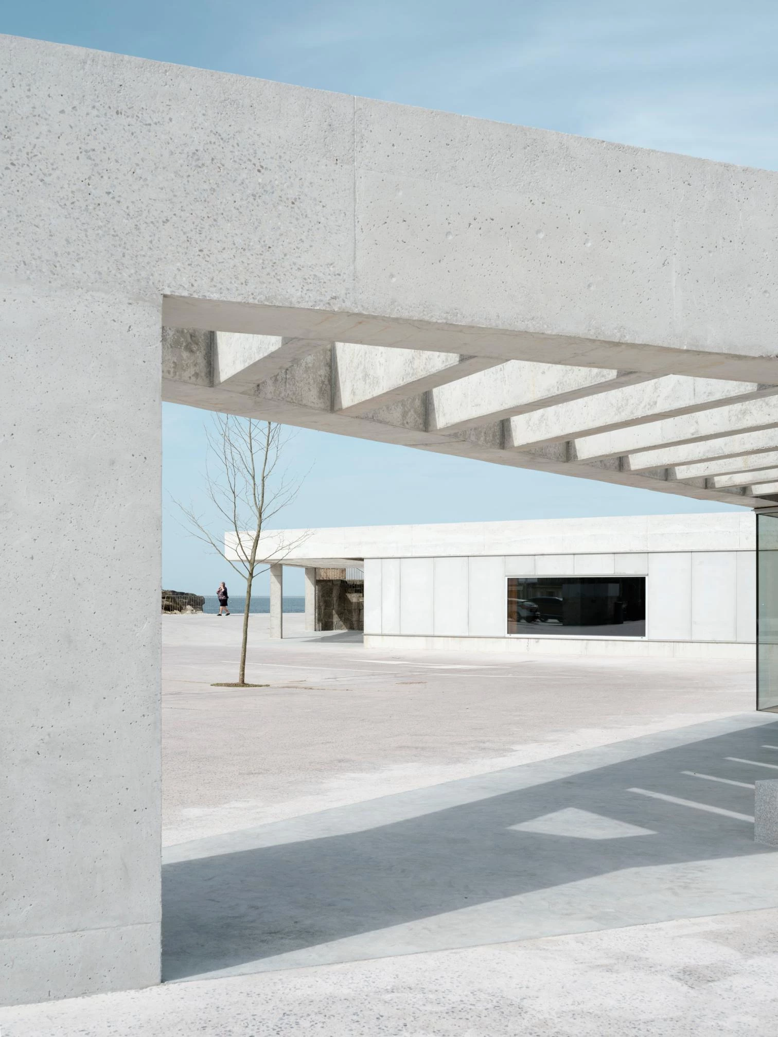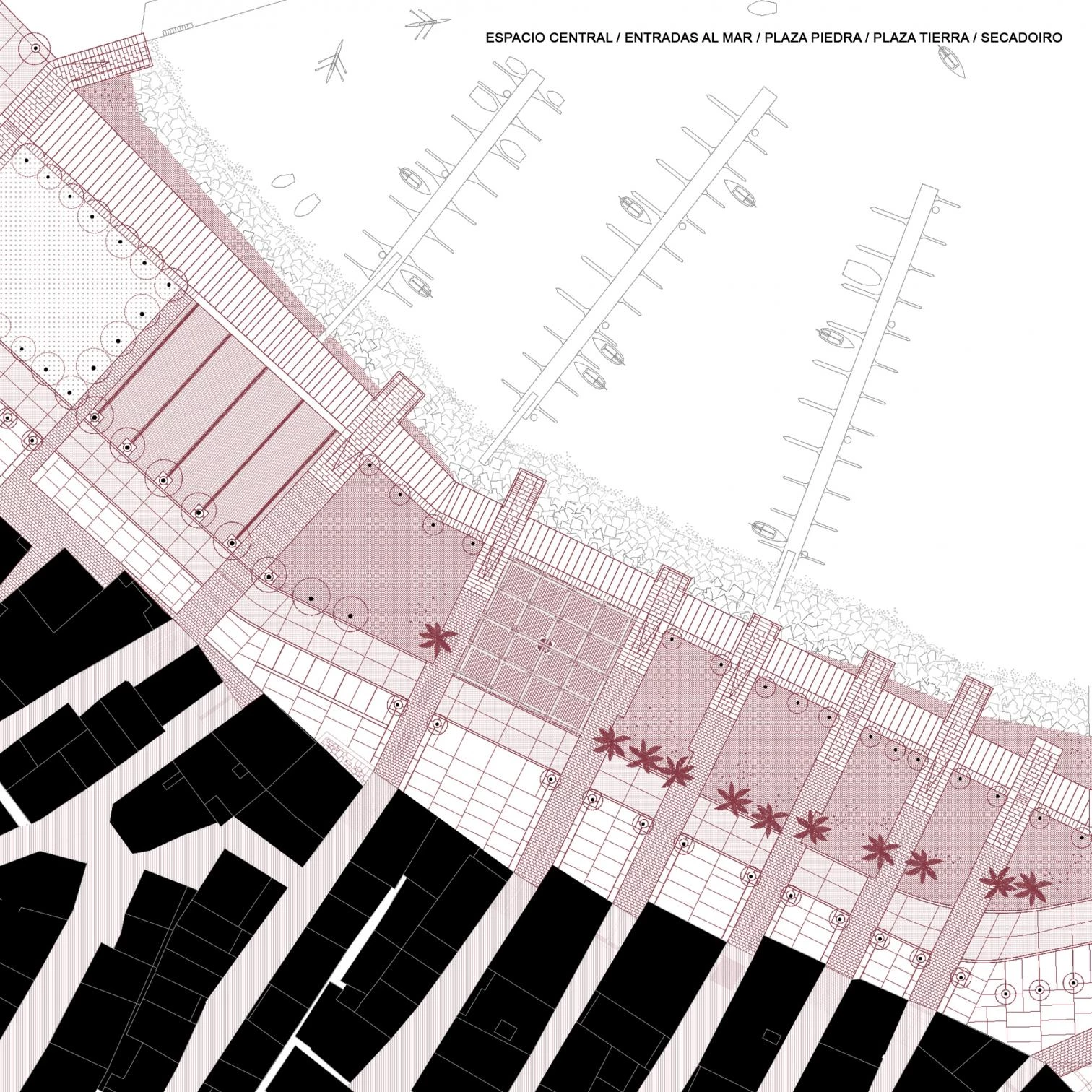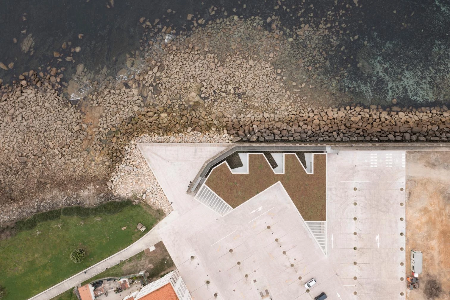 So close is the sea’s bond with Porto do Son that in the past, the sandy spots of the beach reached all the way to the first streets of the municipality, located in the Galician province of A Coruña. Barges, fish-salting factories, and shipyards occupied this space which, with the modern development of harbor activity, became blurred and severed from the urban core. A reorganization was carried out to address the need to regulate new activities, pacify the coexistence of pedestrians and vehicles, and above all reestablish the historical link to the berth, creating a succession of amenities for strolling, stopping, and socializing with rough-hewn concrete as the connecting elenment: esplanades, tiers, and lookout points marked by a framework of wooden posts and beams that hark back to old drying structures.