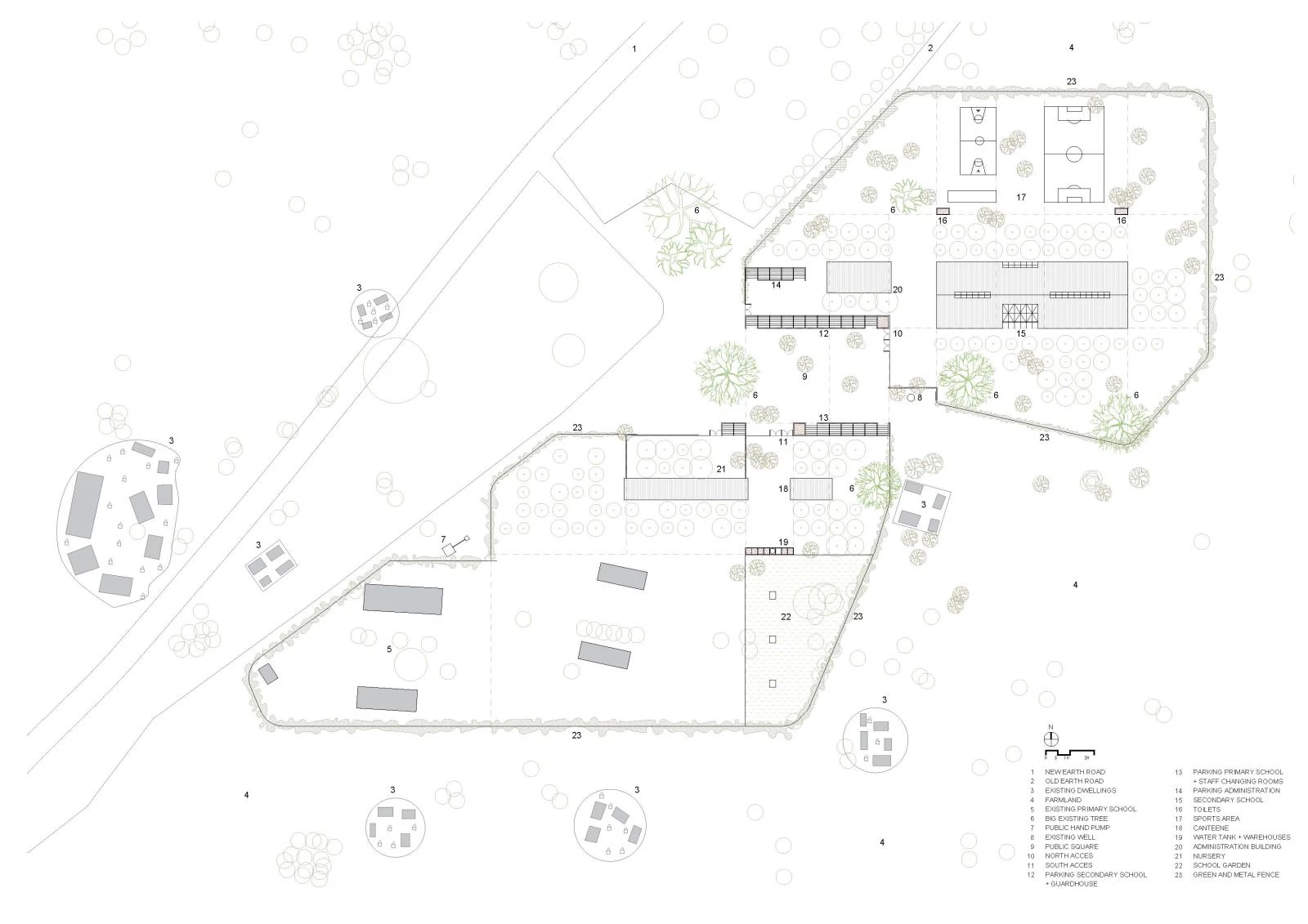 Shortlisted in the international section of the 2020 FAD Awards, the project submitted by Albert Faus Madrid (Barcelona, 1972) involves reorganizing the Bangre Veenem educational complex, with its existing primary school serving the village of Youlou, and raising a secondary school and auxiliary constructions (canteen, staff changing rooms, guard cabin, water tank, etc.).