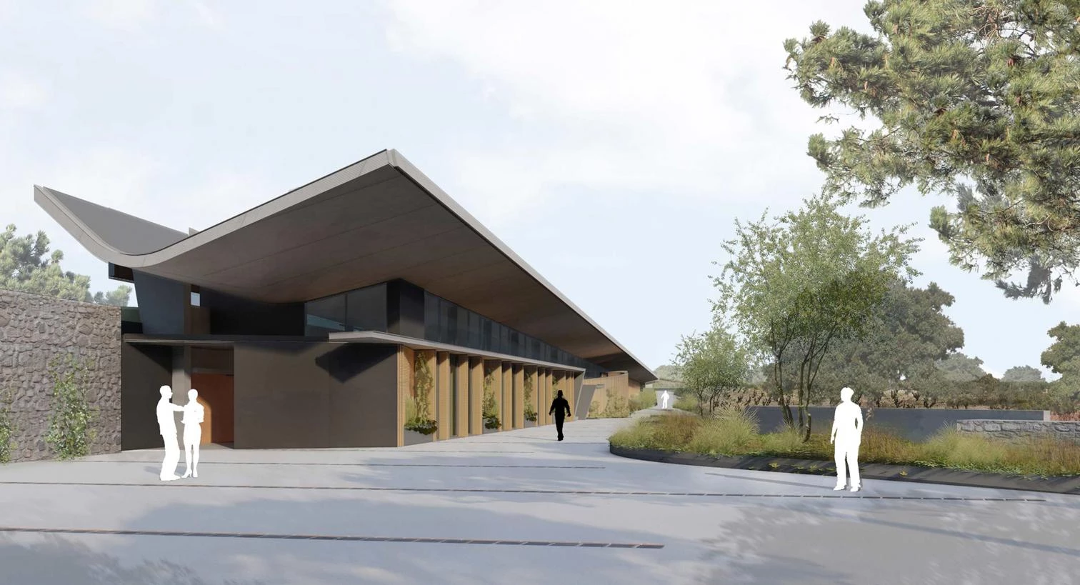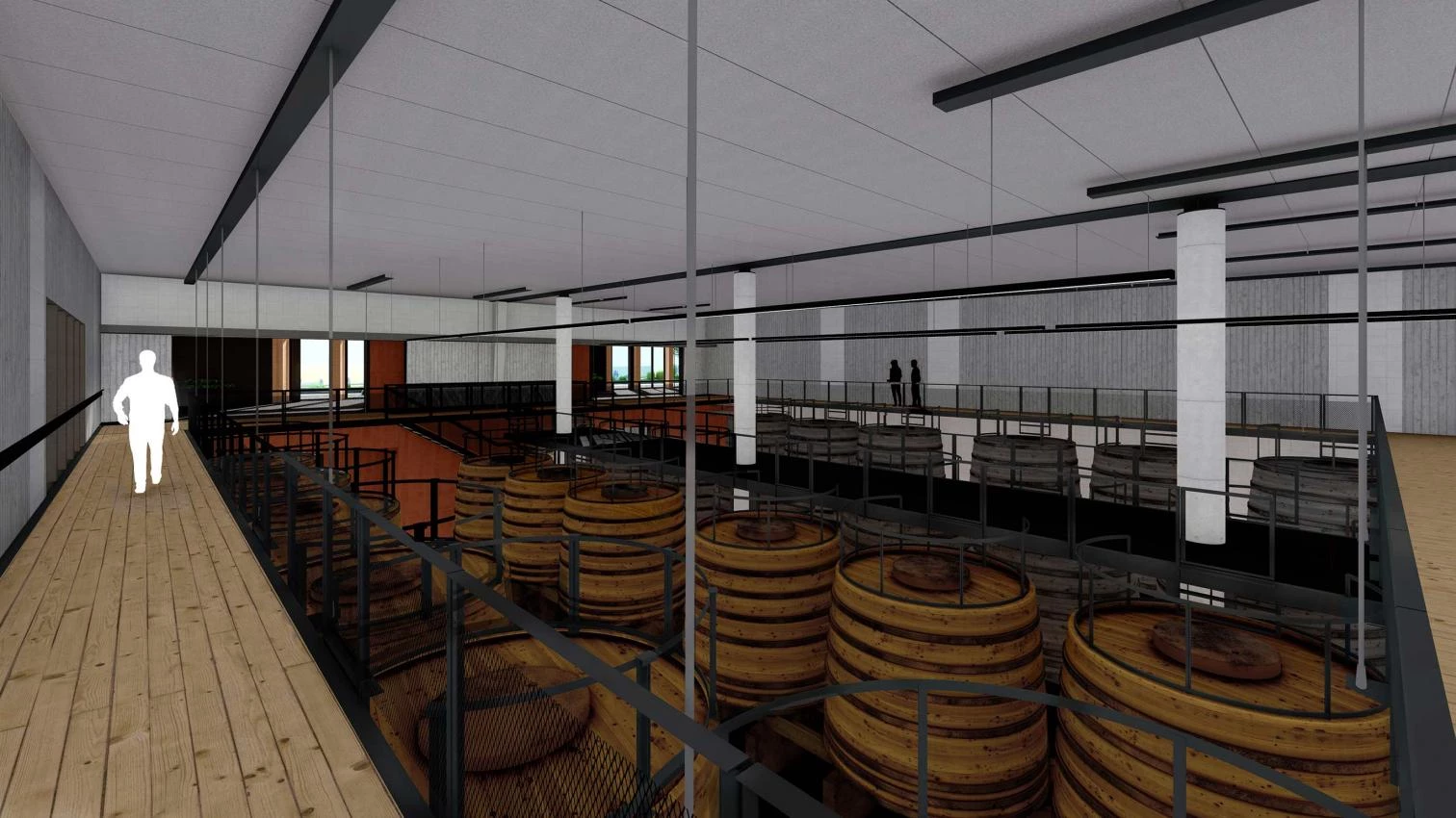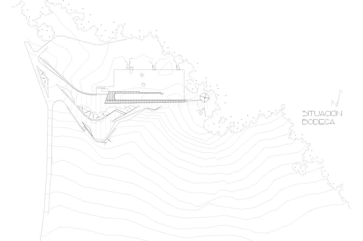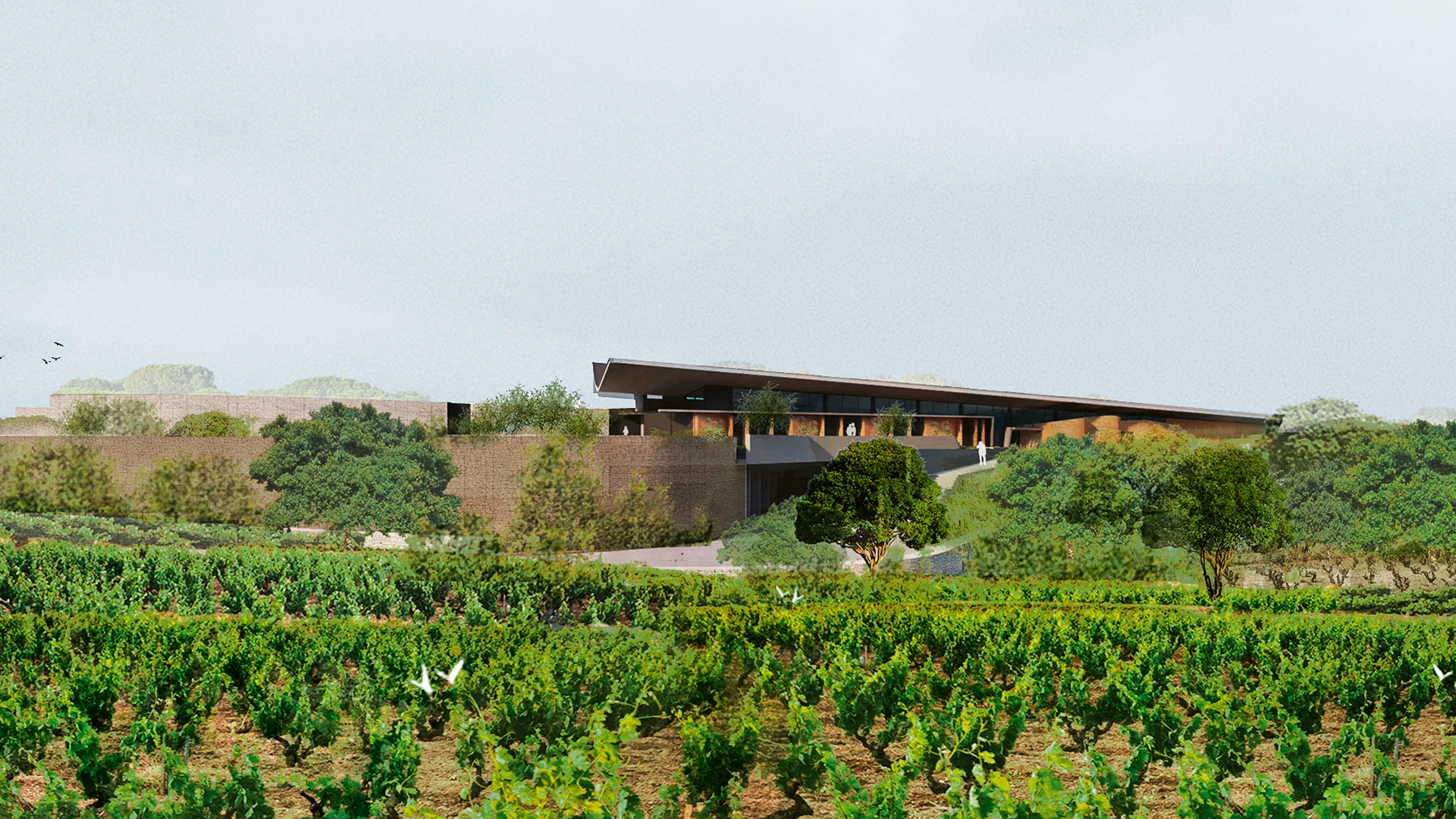 The new building is characterized by a curving concrete plane, the roof, which can take vegetation and come across as a continuation of the rural landscape. The project presents two types of air shafts, which close and open by means of hatches to regulate ventilation, air renewal, or drying at every step of the winemaking process. The interior spaces combine exposed concrete, using reeded formwork, with frames and claddings of Viroc board, wood-chip panels, and mass-colored cement. Completion of the works is scheduled for 2025.