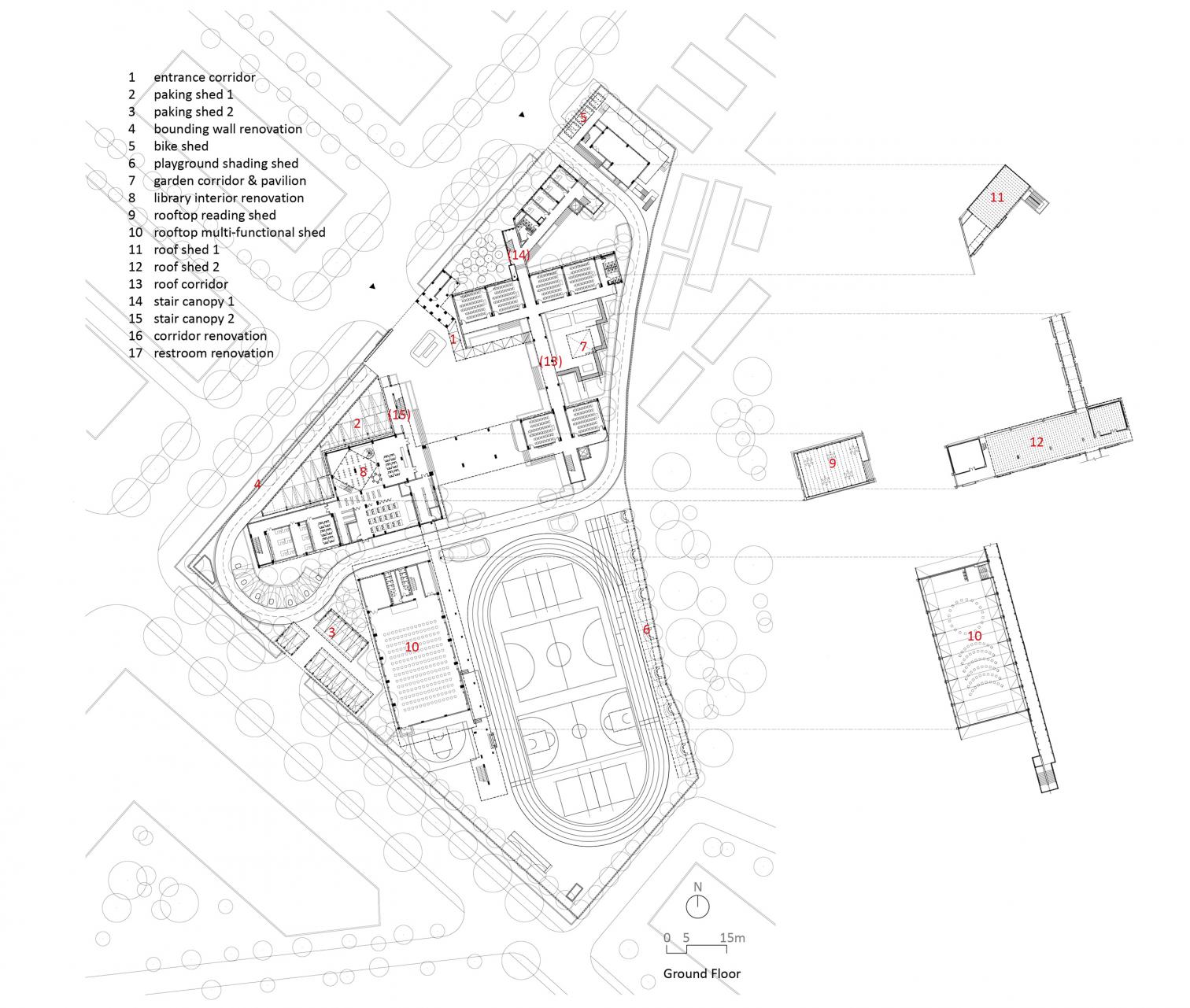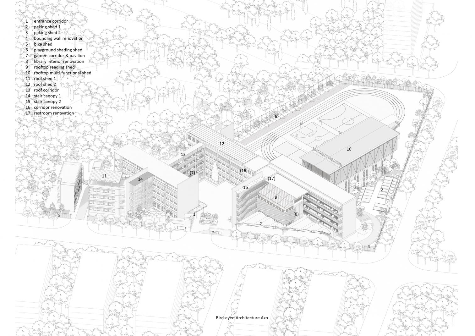 Donghua Chen StudioIn a limited span of time, during summer vacation, the Nanhai Primary School in Shenzhen, China, was renovated. A series of operations were carried out to make the most of all useful floor area, activate residual spaces, and install solar protection.