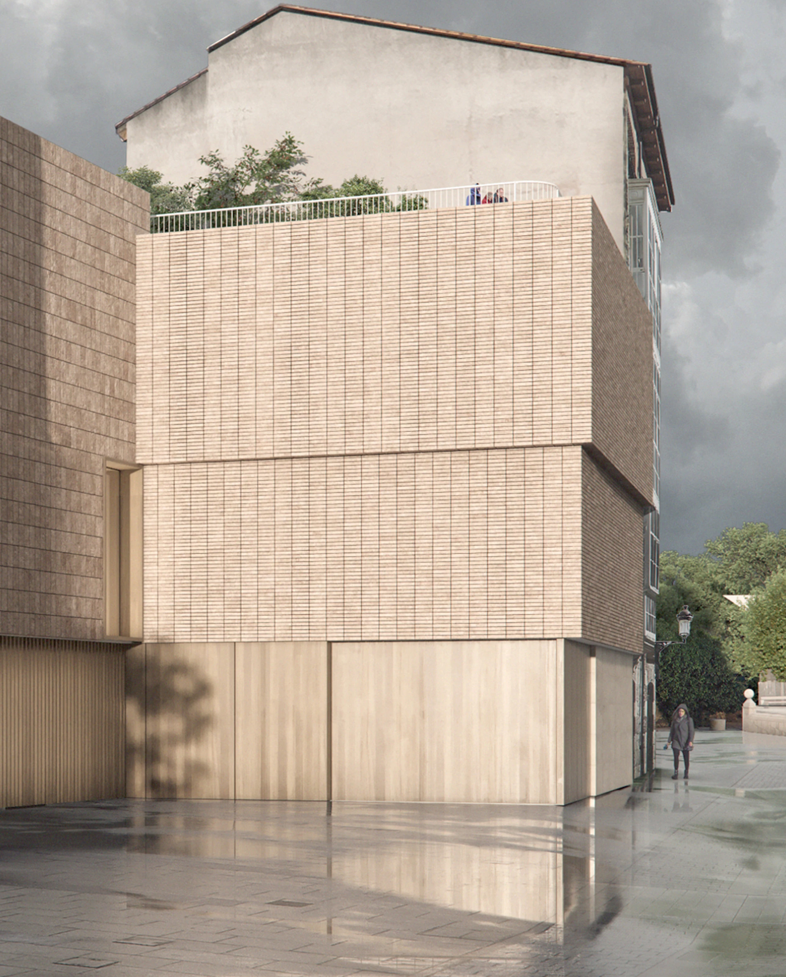 Founded by Joaquín Pérez-Goicoechea and Nasser B. Abulhasan, the firm AGI architects has won the competition to renovate and expand Castilfalé Palace, which harbors the Municipal Archive of Burgos. Adjacent to the palace, the enlarged archive depot will be concentrated in the extension, an opaque corner volume that features a double technical wall, highly insulated to ensure that the documents inside are well preserved. The new construction shows a base of stone and wood under two stories presenting a stepped profile.