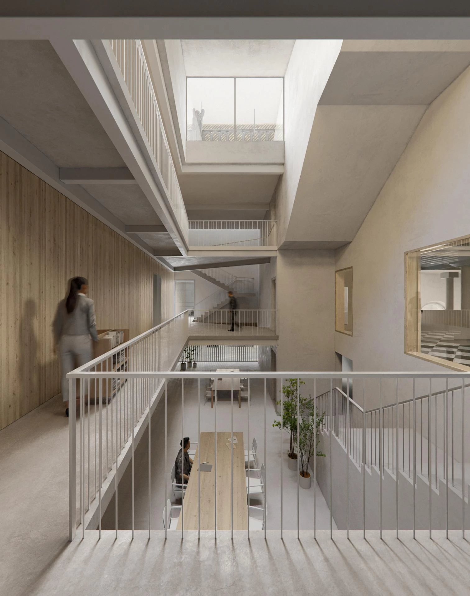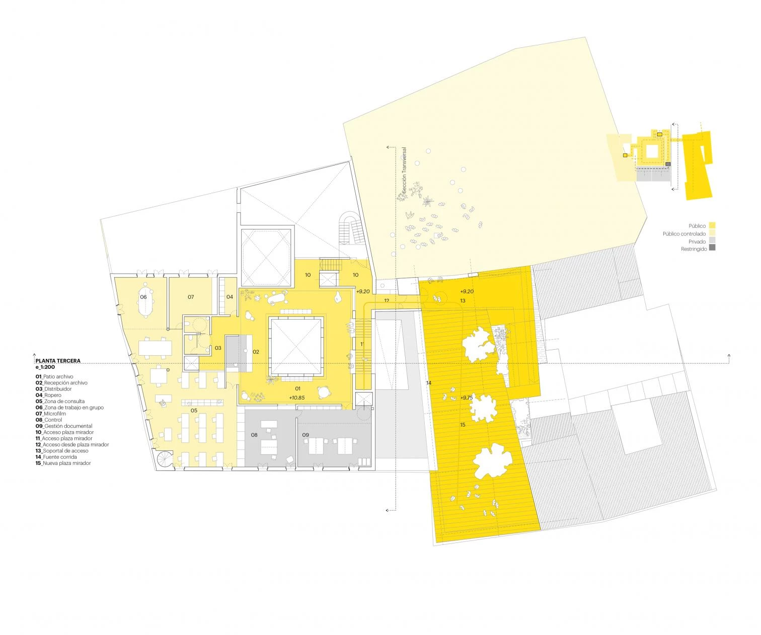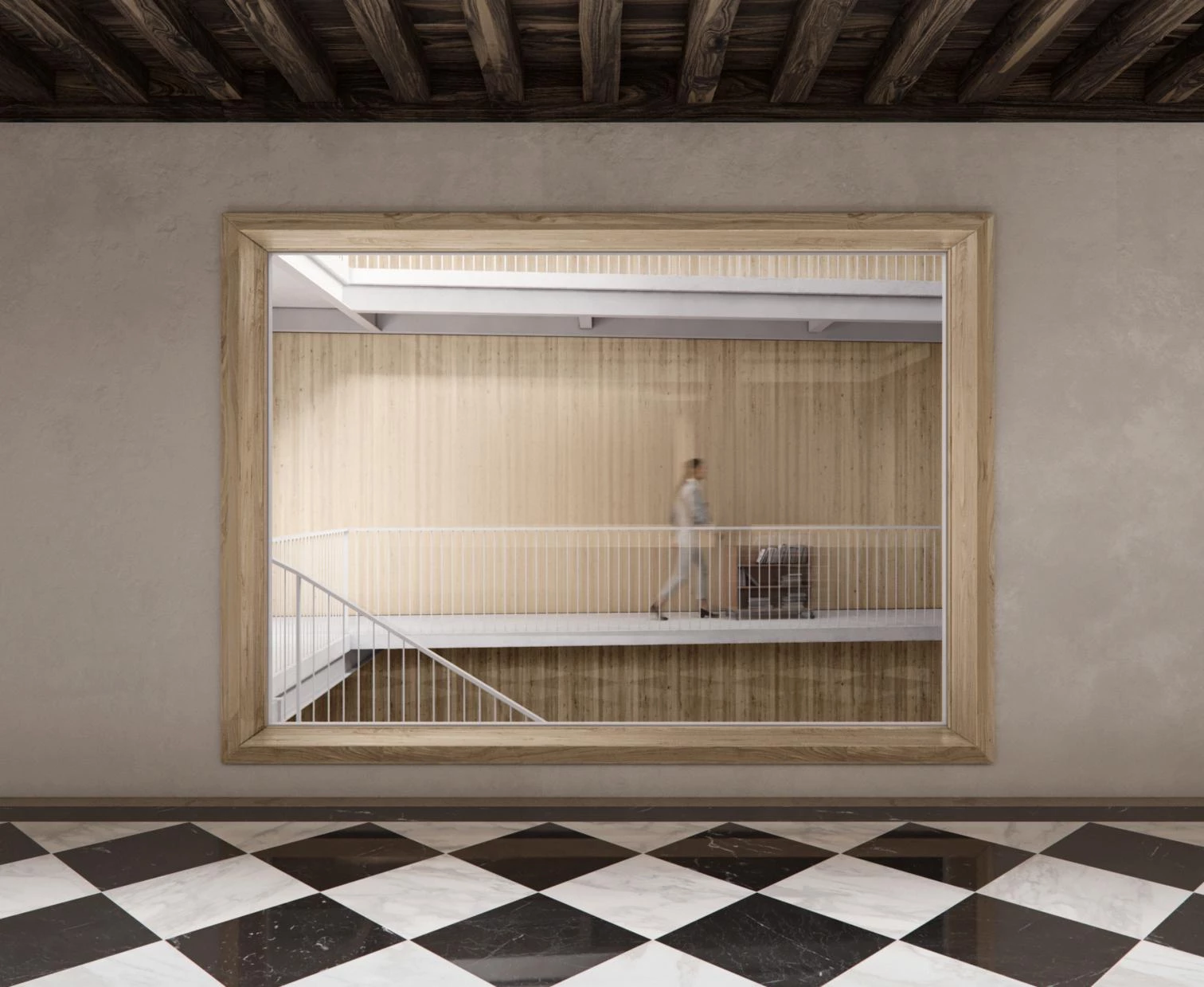 The palace incorporates new uses differentiated by levels: the ground floor for events, conferences, and concerts; the one above it for multipurpose classrooms; the next with an area for exhibitions; and the top for archive-related activities, including rooms for research and consultations. The project pursues the energy-efficiency standards of a Passivhaus building.