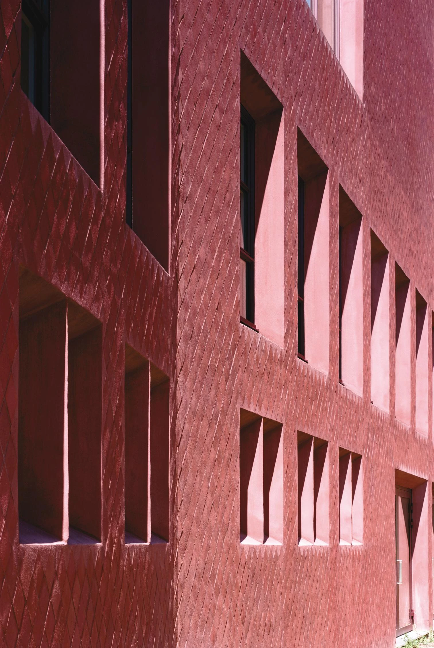 The external cladding of bricks handcrafted in the unusual shape of diamonds engages with the surrounding context in a unitary manner, evoking the language of the neighboring 19th-century buildings.