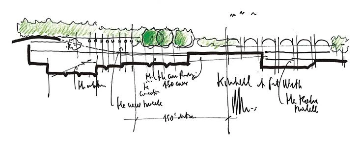 Since the opening of Louis Kahn’s building in 1972, the Kimbell Museum has been enlarging its collection, and with that, its needs have increased. It eventually became necessary to raise a pavilion that would accommodate a spacious gallery for temporary exhibitions, classrooms, facilities for seminars, and also an auditorium with seating capacity for 298 people.