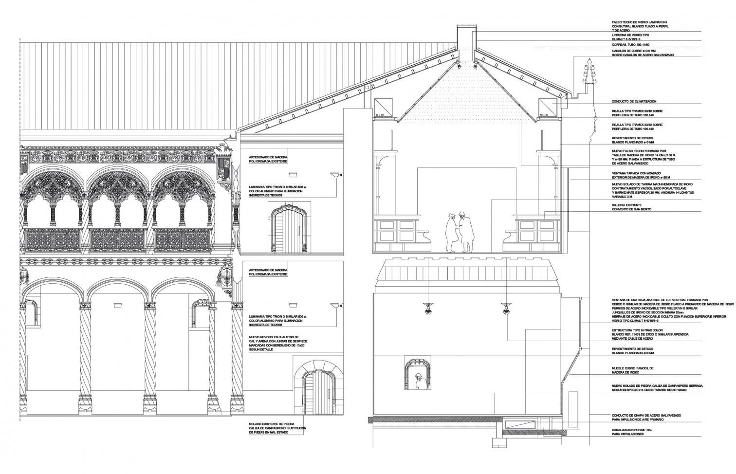 Though the project addresses every part of the complex, the degree of intensity varies in accordance with the specific characteristics of each piece. Because the school and the cloister have a special value, the work in these areas has been carried out carefully respecting the original systems in terms of construction, space and composition, centering the renovation works on the circulation paths and the distribution of the exhibition halls of the current National Sculpture Museum.