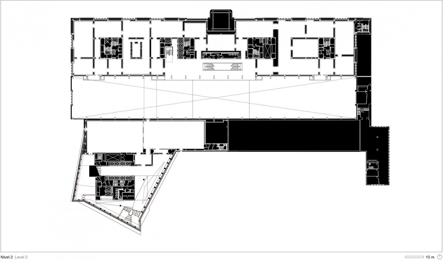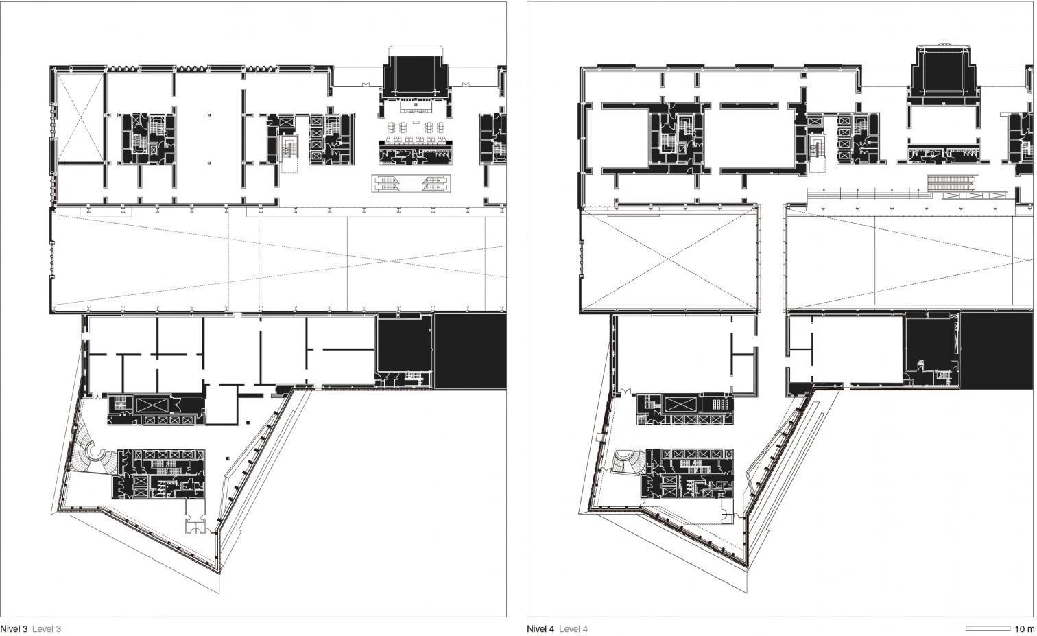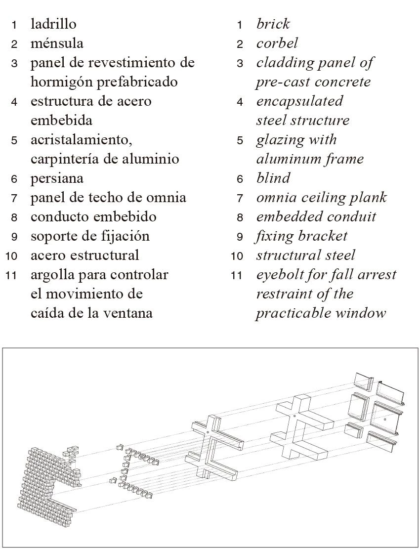 Arranged in a radical new way, the brick forms a perforated screen which filters the light coming in during the day, and through which the building glows at night. The brickwork reacts to the inclined faces by gradually stepping back, transforming itself from a massive material to a veil that covers the concrete skeleton. Strategic horizontal cuts break the continuous brick wrap, affording views and providing daylight and natural ventilation inside.