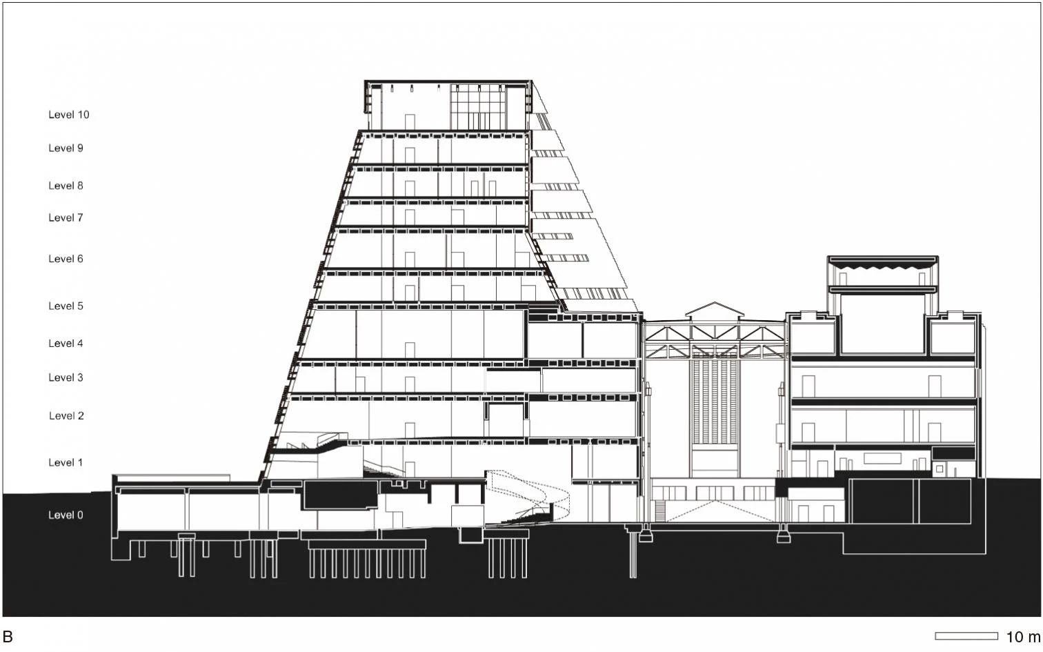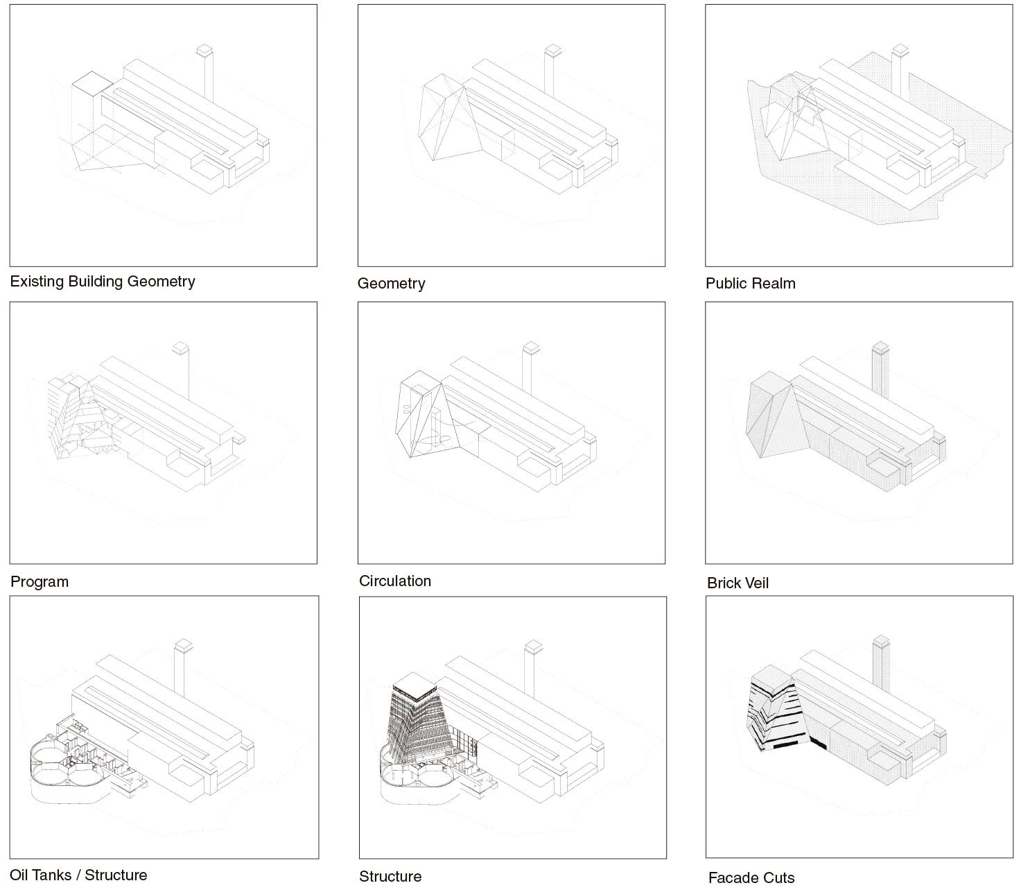 Tate Modern is the world’s most visited museum of modern and contemporary art. It now aims to fully integrate the display, learning and social functions to meet the challenges of a 21st century art institution. Thus the project integrates numerous parameters, developed in close collaboration with the Tate, that had gradually been condensed into a pyramidal form generated from the combined geometries of the site and the existing building. The clover-shaped dramatic subterranean oil tanks are at the heart of these plans and they are a point of departure for the new building. The first phase turned the vast physical dimensions of the existing structure into a tangible reality, by digging out the Turbine Hall; now, the oil tanks not only form the foundation of the new building, but are also the starting point for intellectual and curatorial approaches. These approaches require a range of gallery spaces, large and small, along with less conventional ‘As Found’ spaces and better facilities for the gallery’s popular learning programmes.