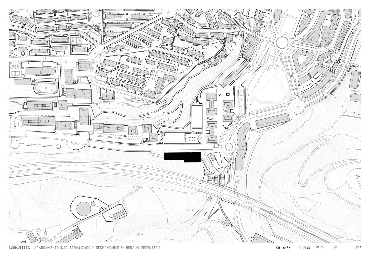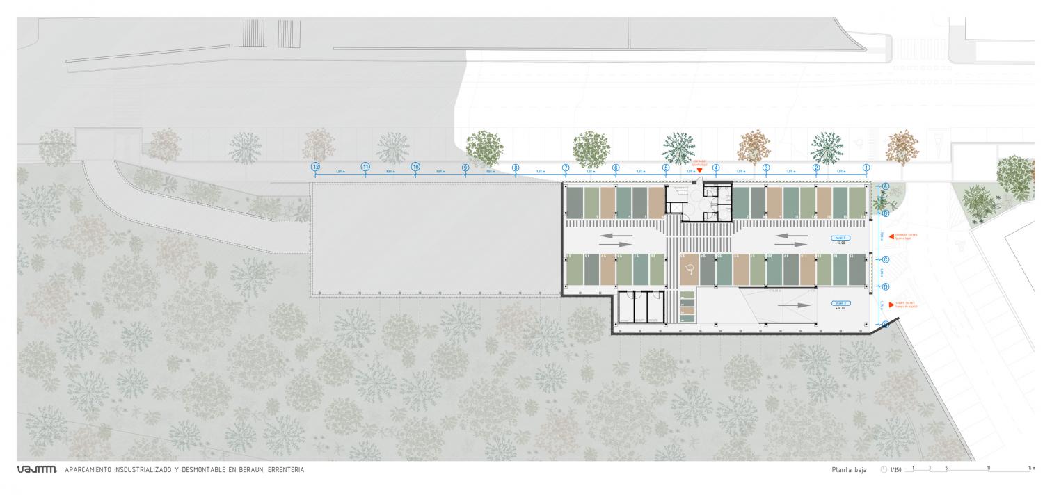 The parking garage in the Beraun neighborhood of Rentería, a municipality in the Basque province of Guipúzcoa, presents itself as an urban infrastructure which, though initially built for vehicles to be left in, could be repurposed in the future.