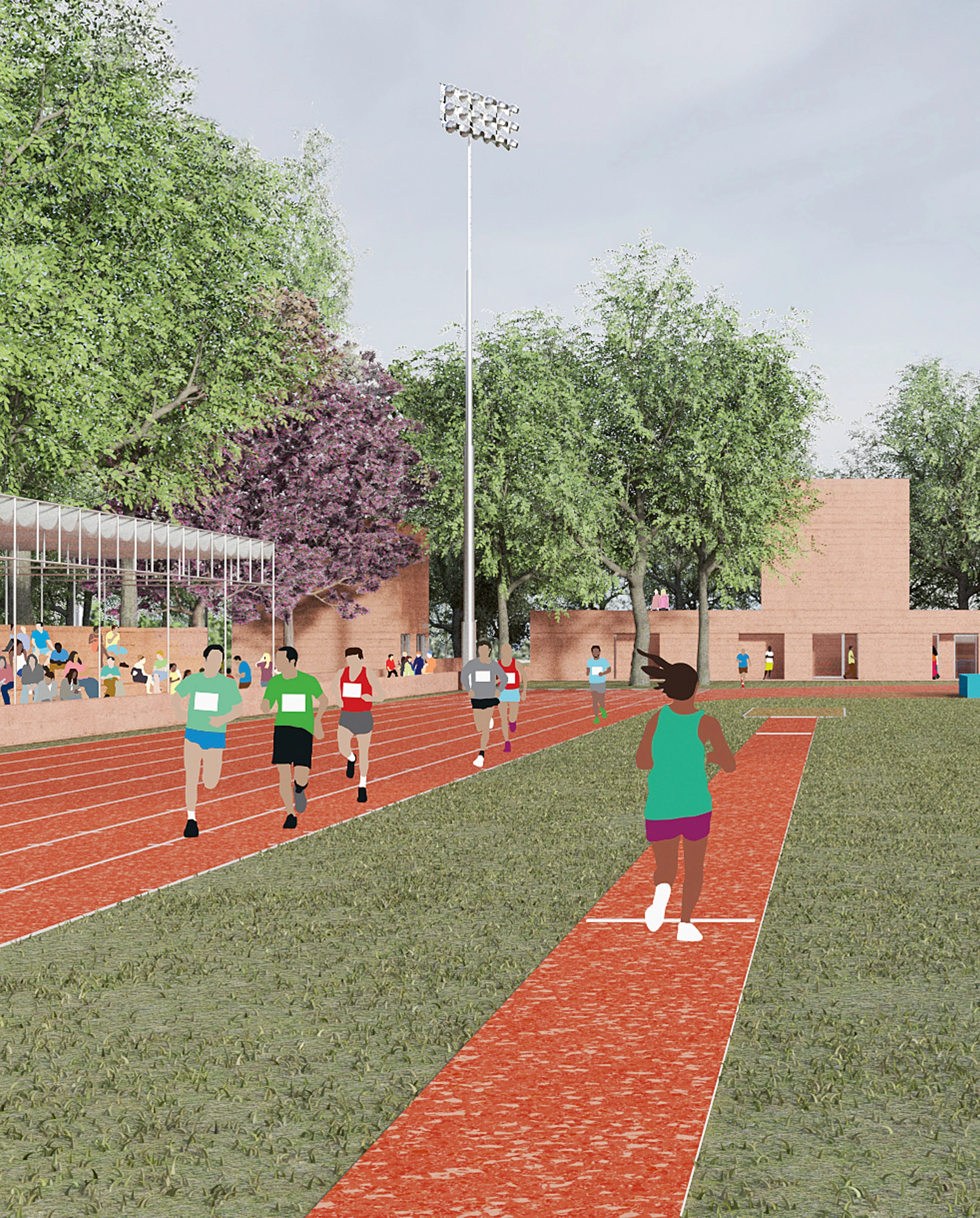 5.558 m² residencial, 1.183 m² instalaciones de atletismo, 23.375 m², superficie total 5,558 m² housing, 1,183 m² athletic facilities, 23,375 m² site areas