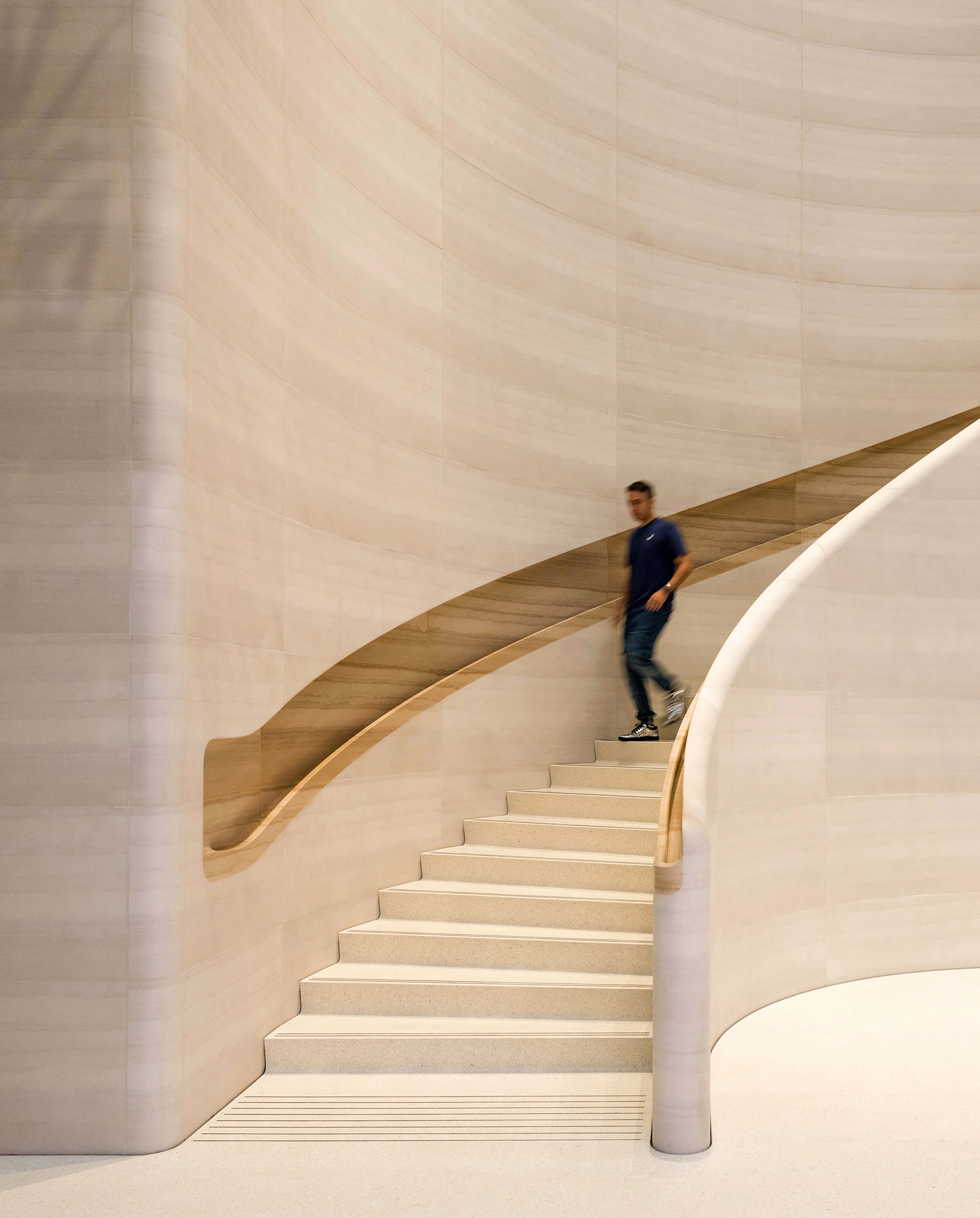 Apple’s first flagship store in Singapore features two spectacular curved staircases, hand-carved by Italian artisans in Castagna stone. The staircase is assembled from solid stone blocks measuring up to 1.6 x 1.2 x 0.2 meters and up to 1,000 kilograms... [+]