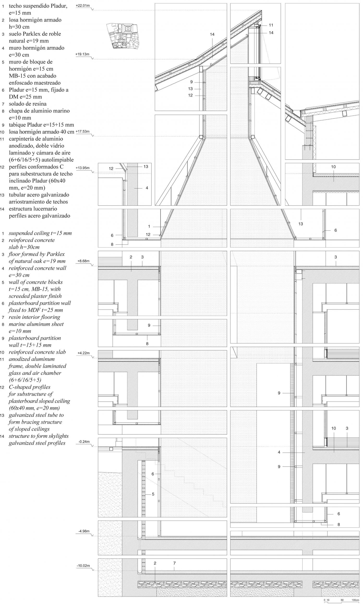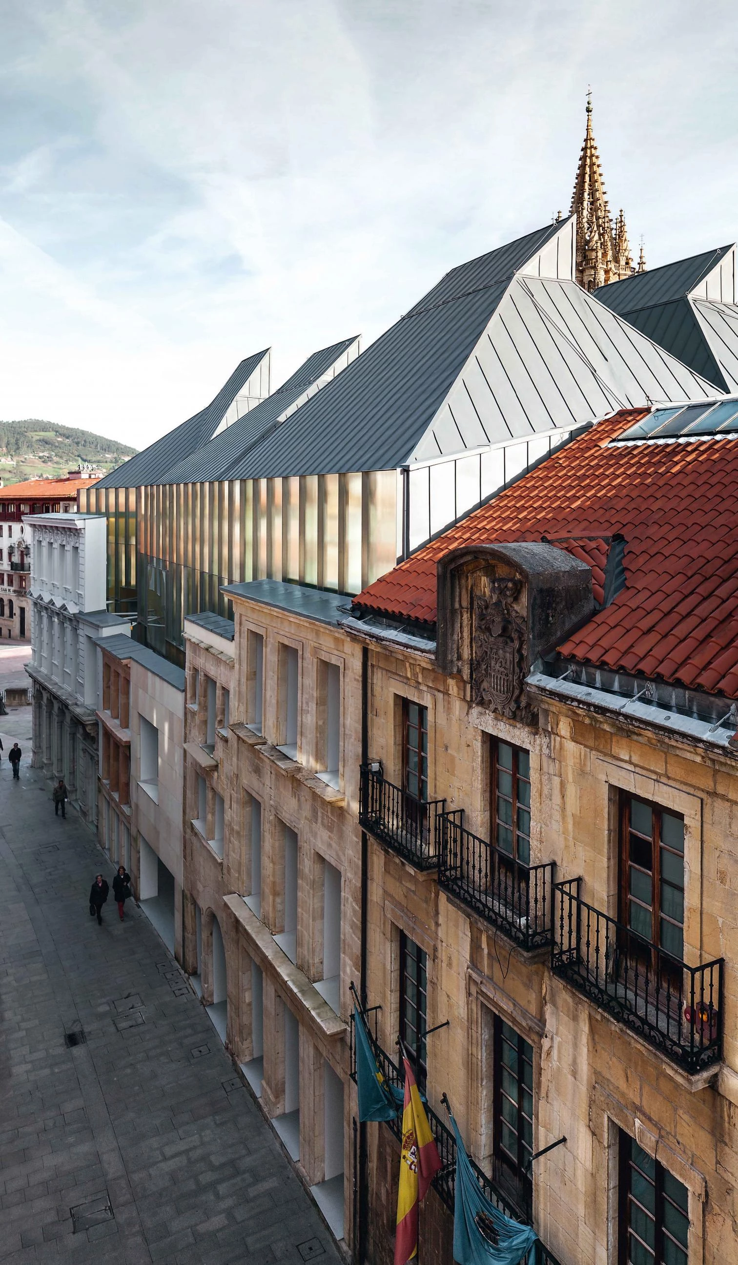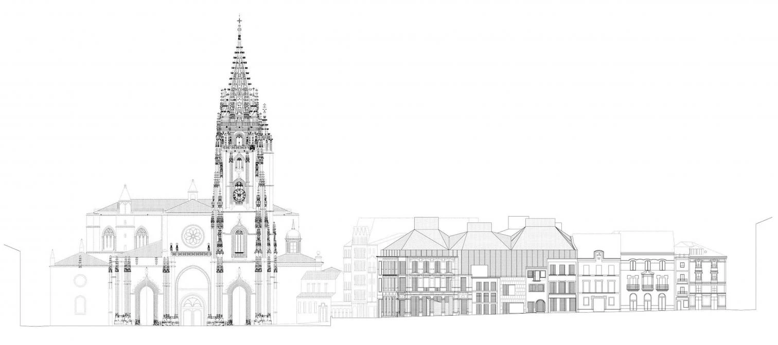 The project embraces the urban fabric as a whole, and includes, aside from the new buildings, the two historical buildings that used to house the museum, the Palace of Velarde (1) and the Casa Oviedo-Portal (2).