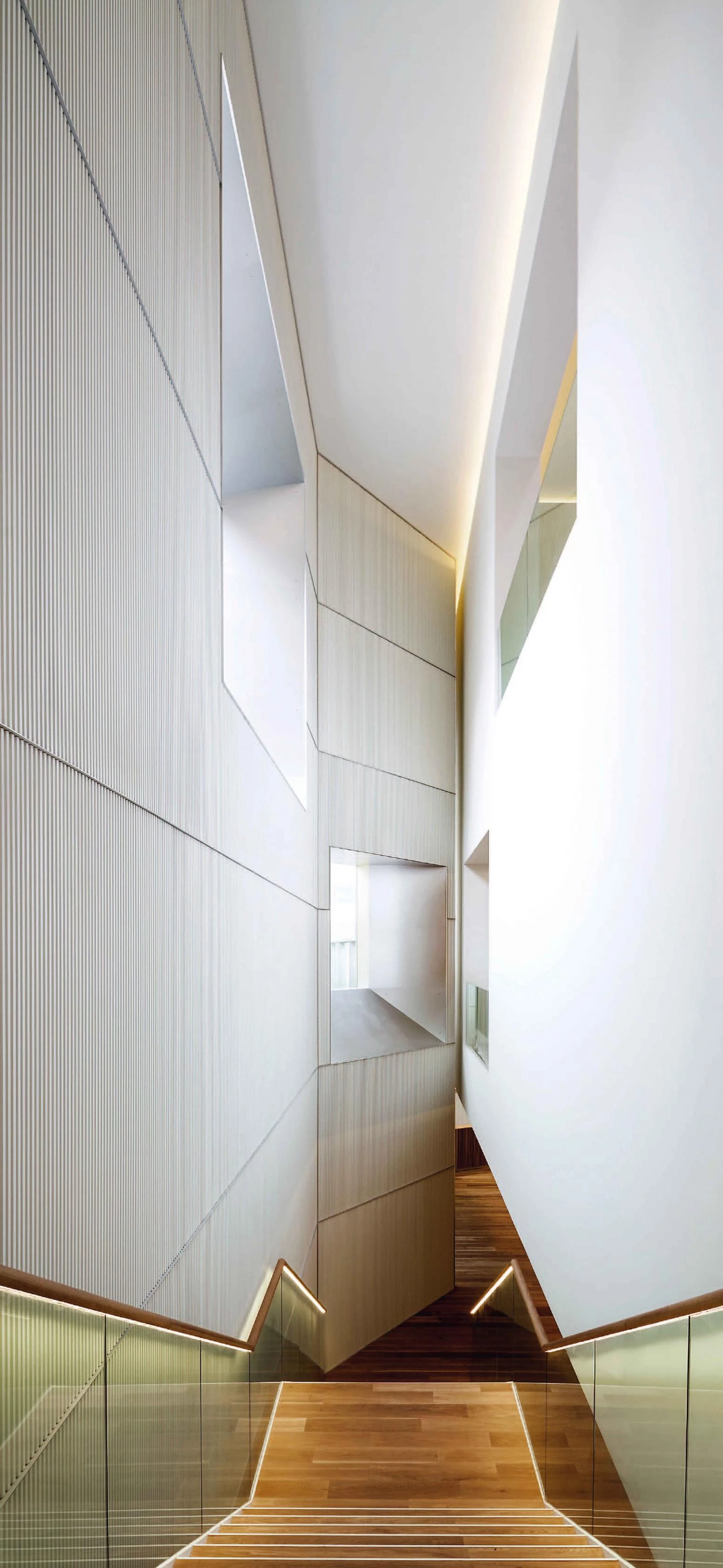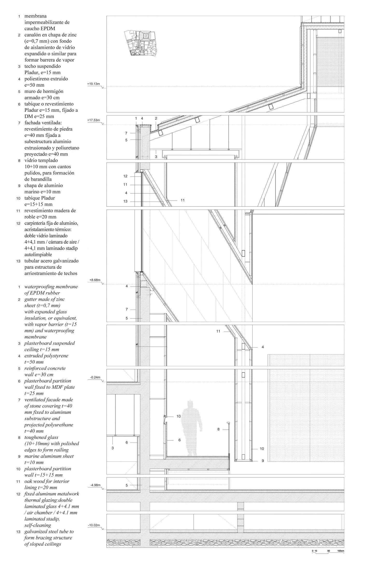 Aside from being the image of the museum, the new facade behind the existing one defines the stairs that give access to all the different floors of the museum and to the double and triple height spaces at the entrance.
