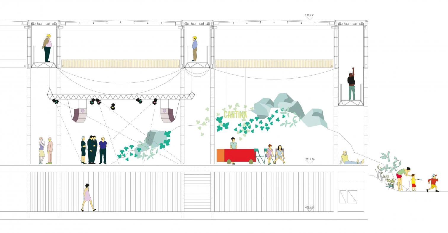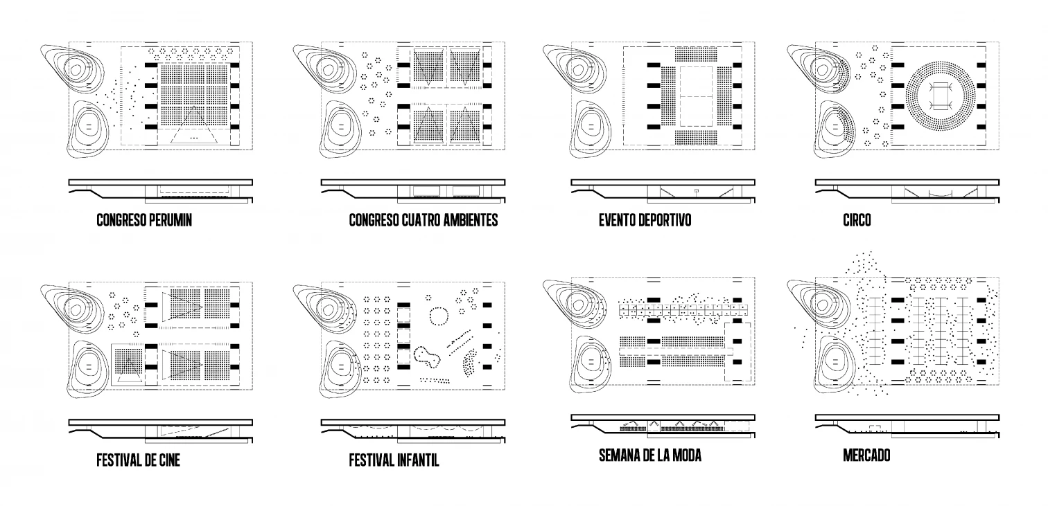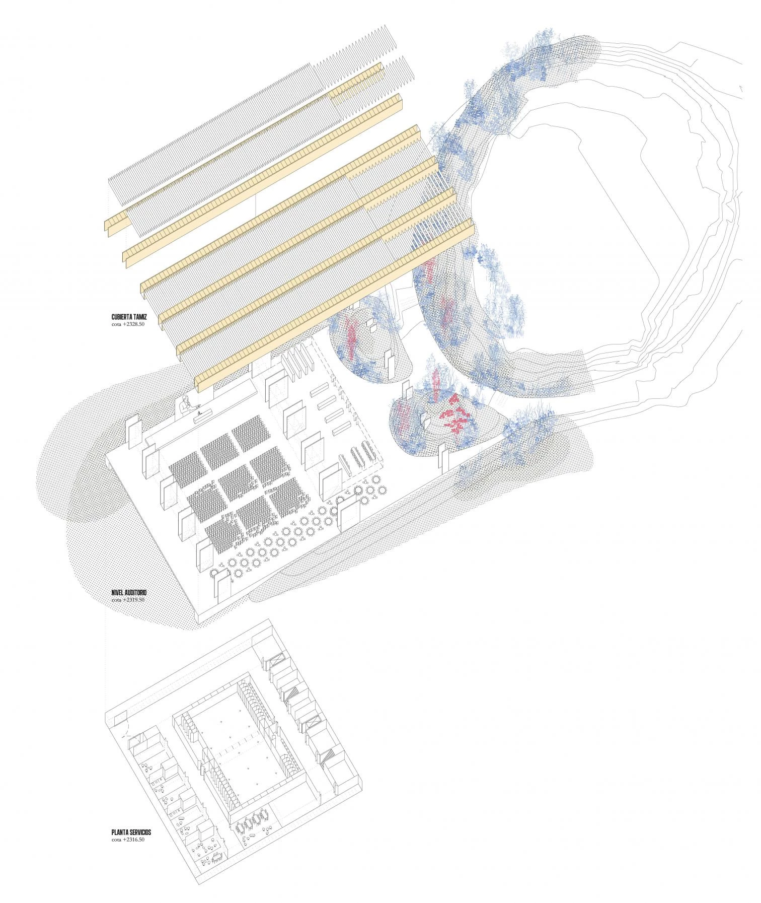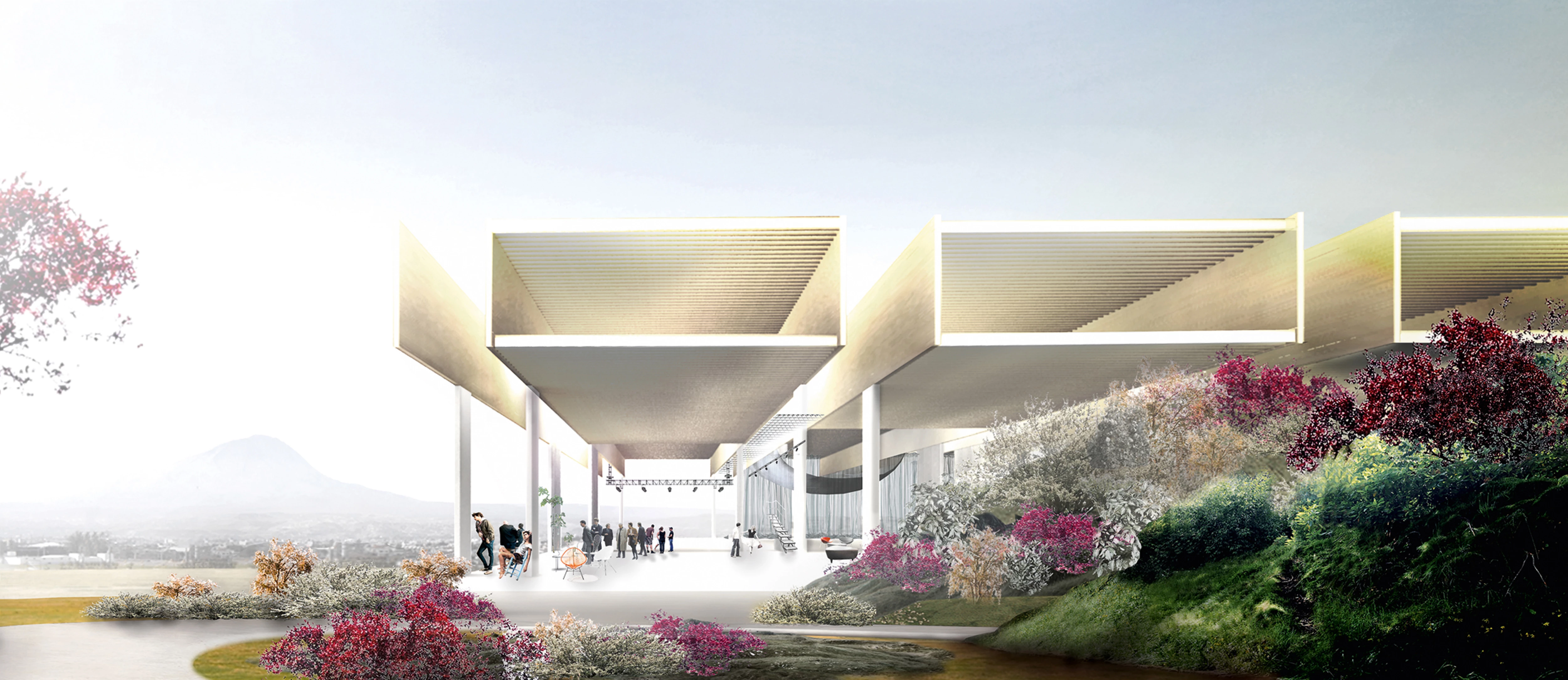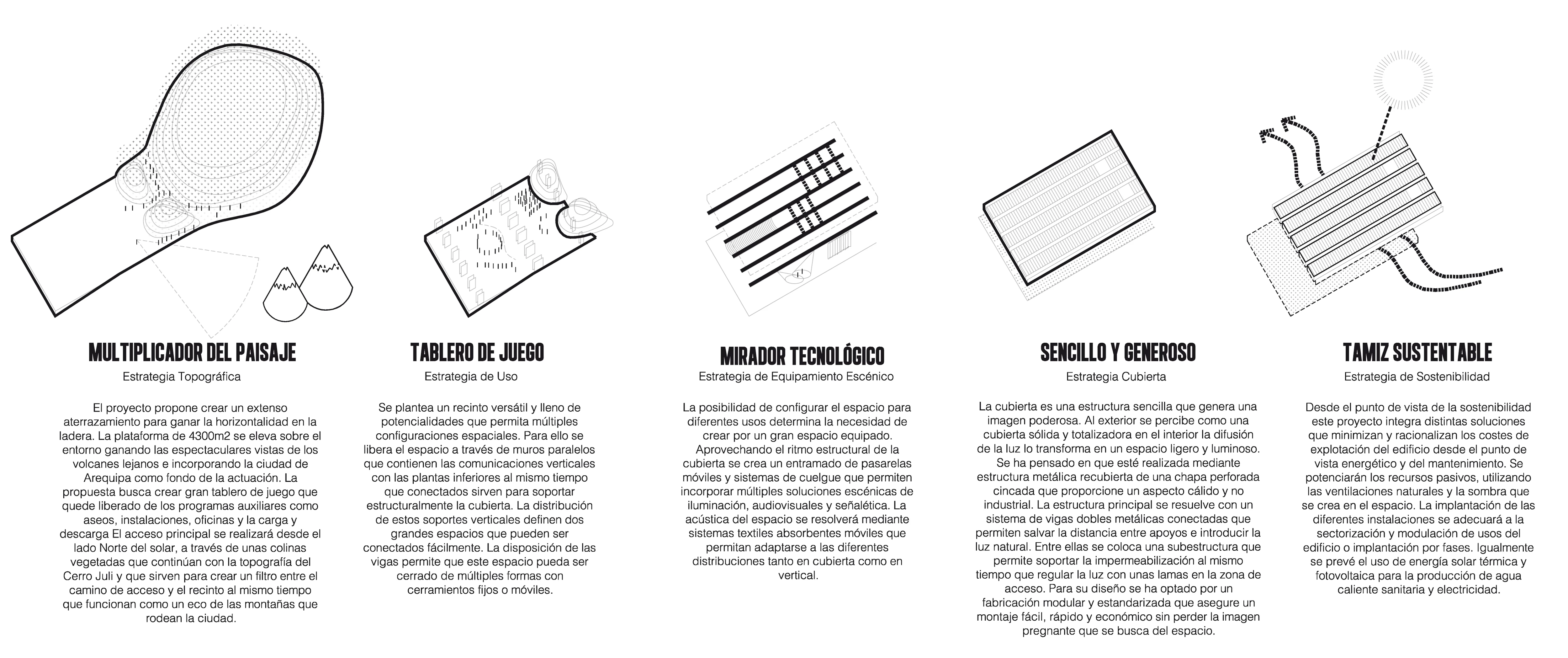 Dealing with a very tight execution deadline as well as a limited budget, this auditorium is to go up in Arequipa beside the Cerro Juli Convention Center, the most important in Peru, and the design for it takes this into consideration. With a seating capacity of 1,500, it takes advantage of the far views of the mountains, and also of the mild climate and gentle topography of the location.