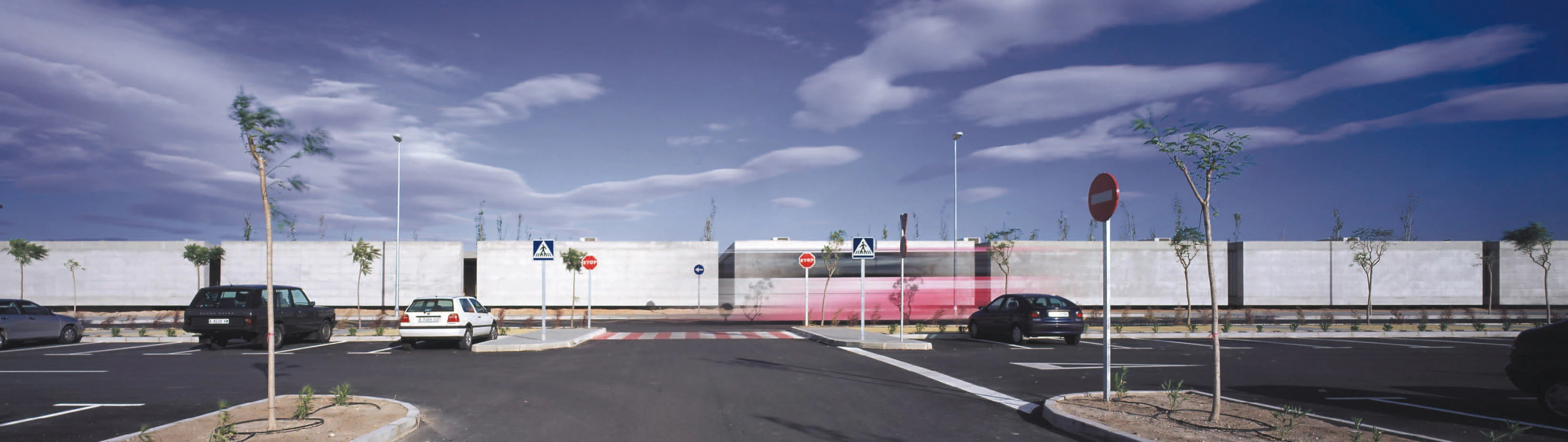 Raised in the sixties on the dry terrains of an old airfield, the San Vicente de Raspeig campus has been subject to a gradual congestion that made it impossible to increase its extension. In view of the shortage of land, the plot initially foreseen to build some industrial sheds – situated to the south of the original site – was set aside when the foundation laying had already been completed to devote the plot to a new building of classrooms. At the time of the commission, the available plot – outside the route that encircles the pedestrian area of the college campus – had a grid piling whose limited loadbearing capacity led to extending the planned program in one-story pavilions. Hence the building is separated from the ground, stressing its distance from a parking area environment which is not very appropriate for the development of academic activities.