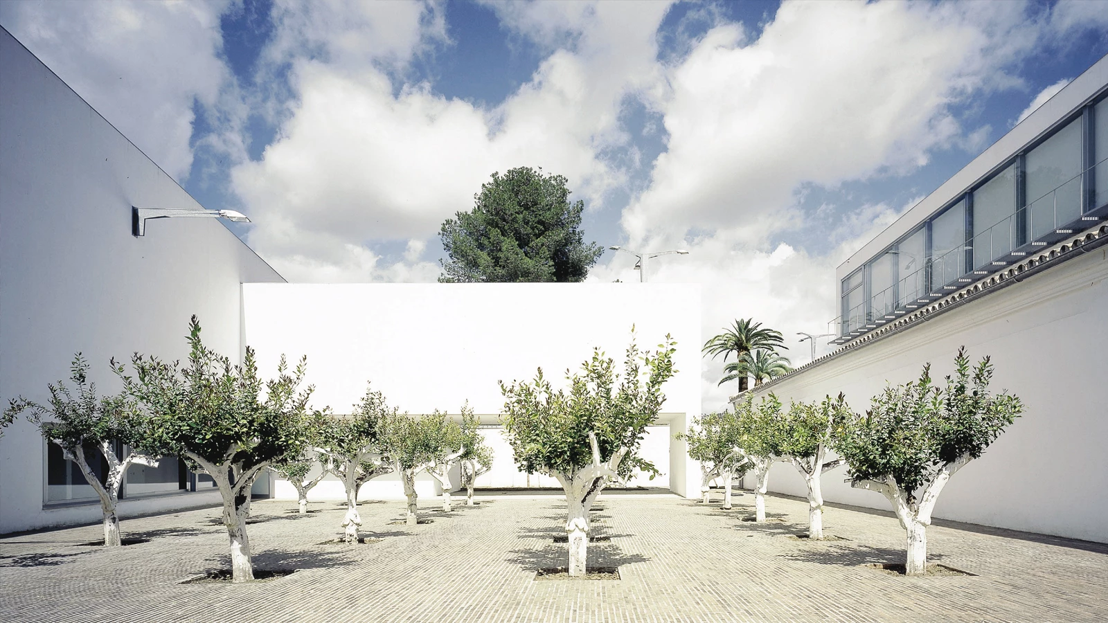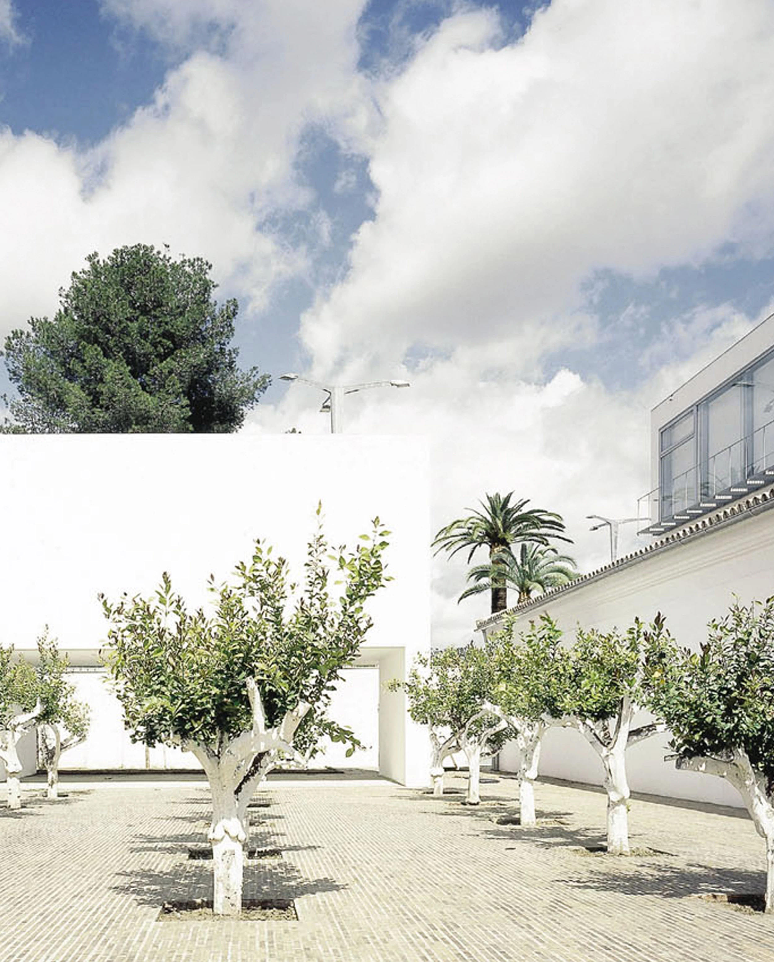The olive grove estates, successors of the old Muslim and Roman farms, are the most interesting rural structures of the Low Guadalquivir basin. This type combines two differentiated areas in a single introverted enclosure: the manor house, with a large garden, and the farmhouse, each one with its respective courtyards. The Santa Ana estate dates from the 18th century, and has now been refurbished and extended to house the new premises of the Tomares Town Hall, province of Seville.