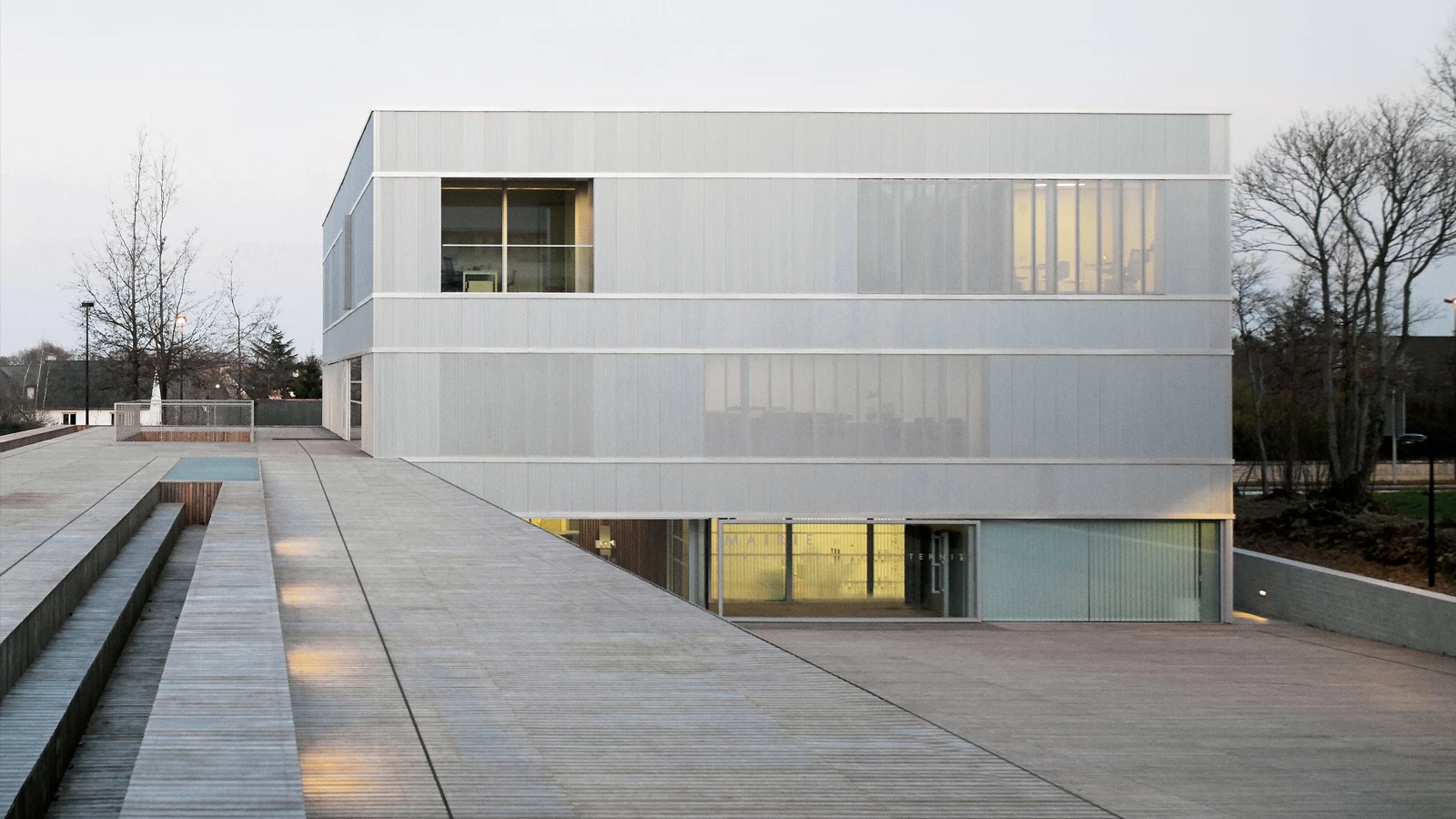 The project tries to create a city hall that avoids the usual monumental codes of institutional buildings and gives citizens a new civic center. This compact volume is conceived to be not only an administrative center, but also a symbol for the community and a catalyst space with the capacity to harbor new collective uses. Both the building and the public area that surrounds it pursue geometric abstraction, alteration of scale, and the surpassing of the traditional models of representation so as to offer an altogether new narrative; a language that, while respecting the conventional typology of town halls, distinguishes itself through a contemporary spirit as well as through revised views of the recurring elements of municipal buildings, such as the public square or the mayor’s rostrum.