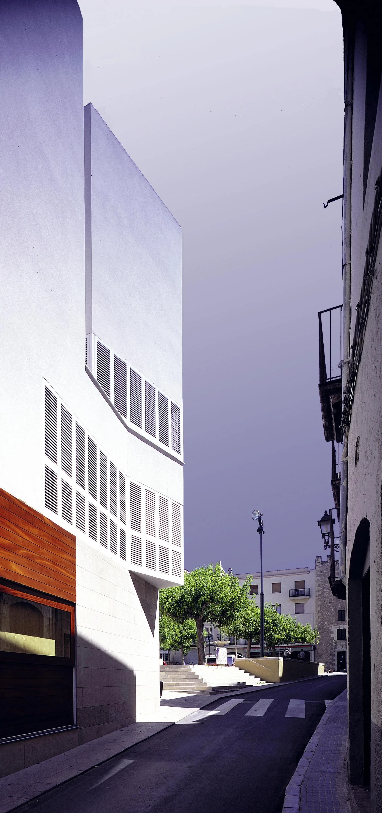The building has six levels, including a basement. The mayor’s office and spaces directly serving it are situated on the second story, close to the plenary session hall and two more council rooms. The rest of the program is distributed on the remaining floors: rooms for attending the public, meeting rooms, more offices. The latter are arranged along the outer sides of the building, with the advantage of natural light and views, while the large public service zones are pushed toward the heart of the premises, around the courtyard. Whereas the interior displays a wide variety of materials such as beechwood boards, teak floors, Burriol stone and glass, the exterior uses white-plastered shutters to state its serene presence in the public life of the municipality.