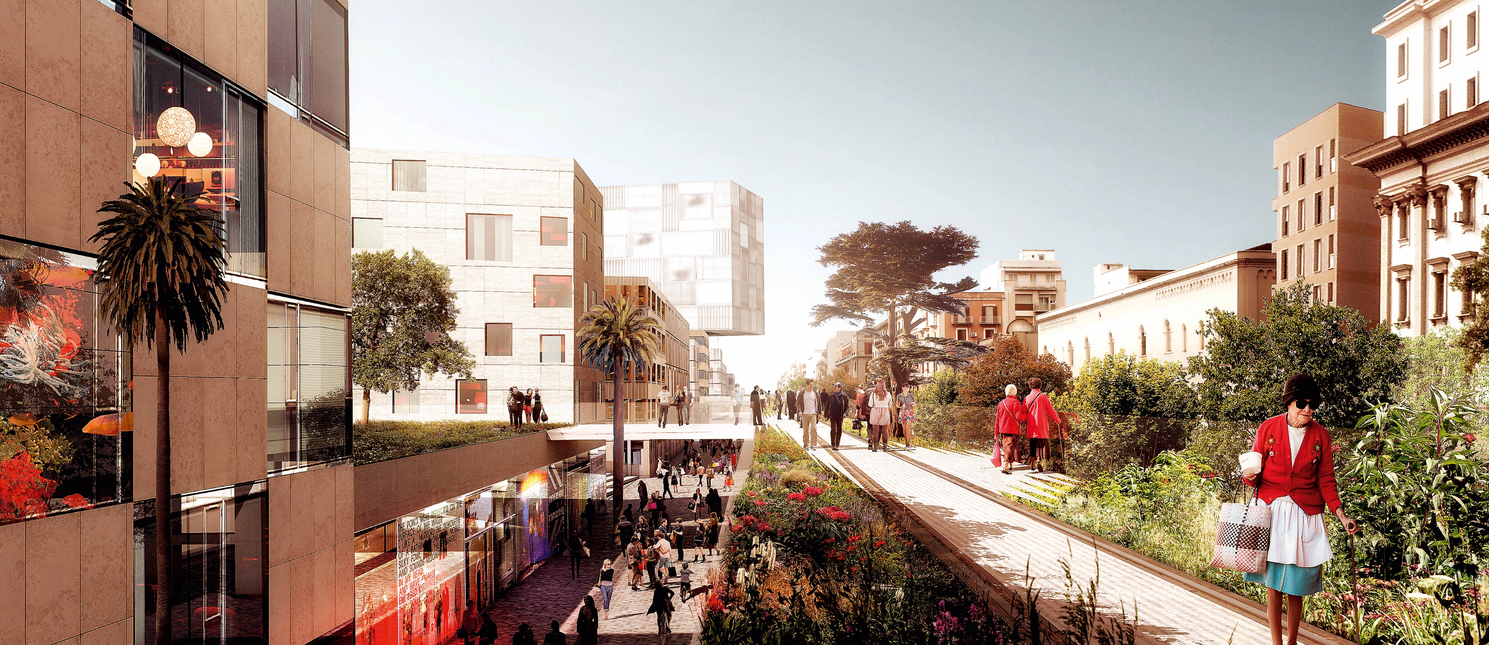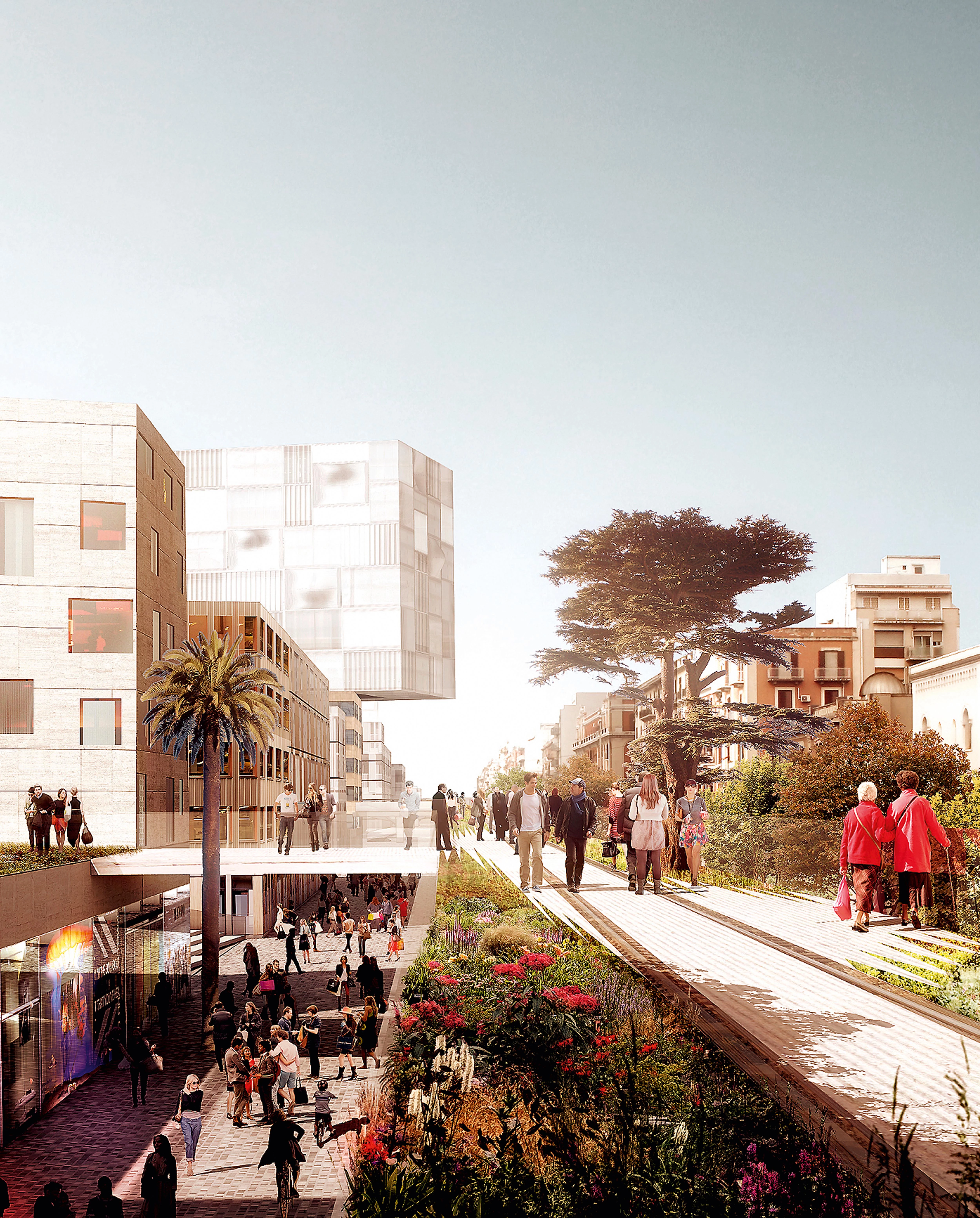 The strategy is organized around four aspects: enhancing the surrounding neighborhoods, defining a communication network with green spaces; creating a new city facade; and configuring new neighborhoods that link up both sides of the tracks...[+]