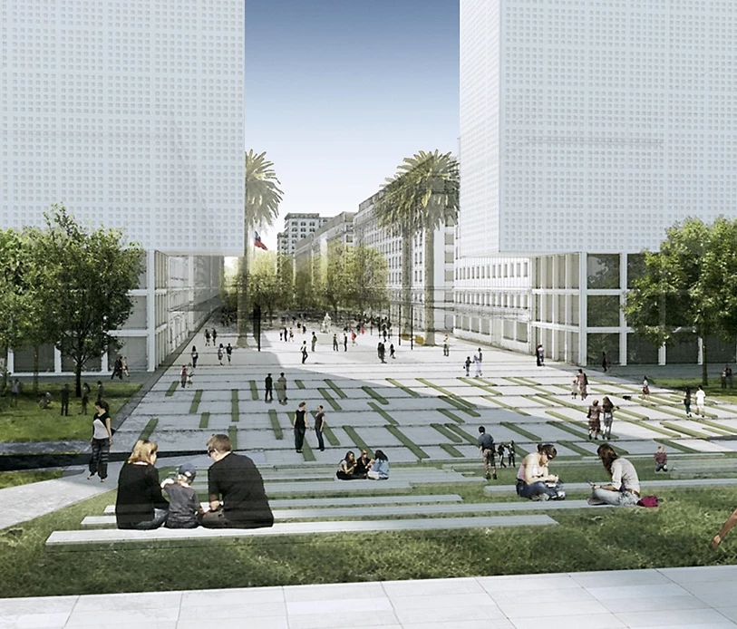 The 2012 competition to remodel the Eje Bulnes extended the project to the south, linking up with the landscaping of the esplanade and ending with two towers joining the promenade with Almagro Park.