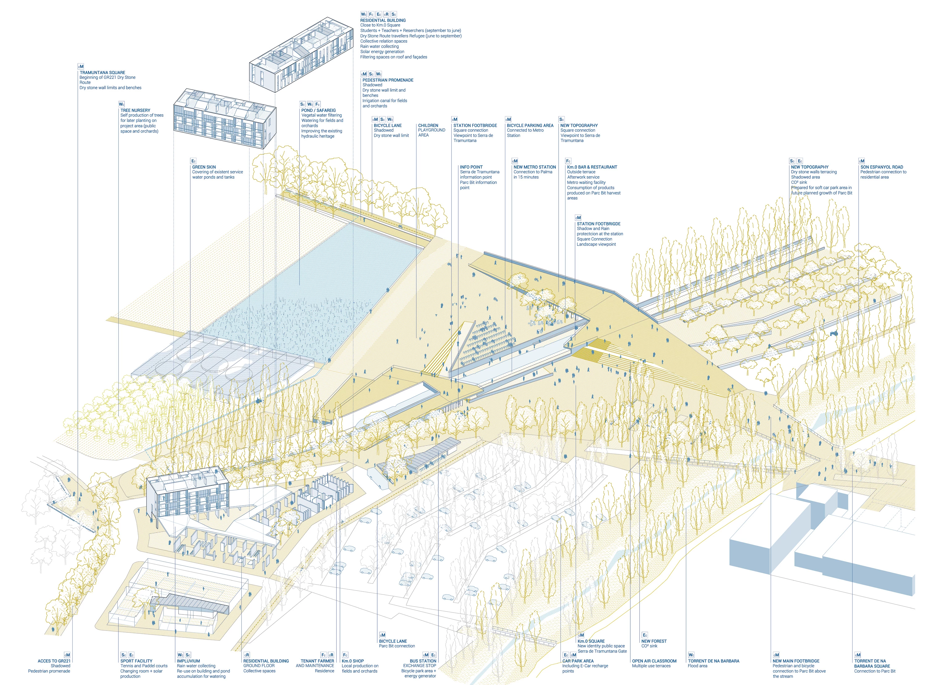As new central location, the station must recover the open spaces and become a generator of an identity, with uses linked to the economic activity of the Parc Bit through a series of social, environmental, productive, and energy objectives...