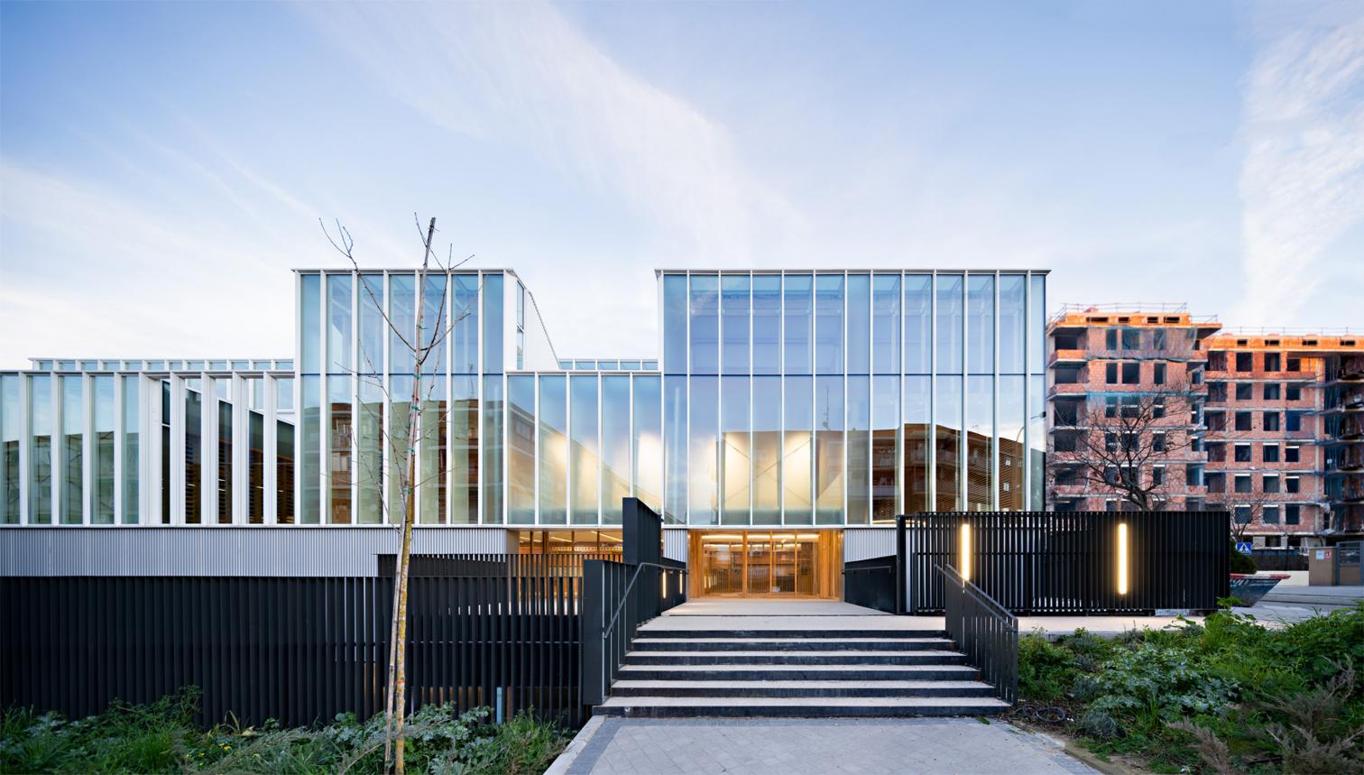 The new public library in the Butarque neighborhood of Madrid’s Villaverde district satisfies an old demand of the community, being the first library to be built by the Madrid City Council in this area. The design revolves around the idea of creating a warm, welcoming place where natural light plays a central role. Based on a ‘thousand suns’ concept, the building incorporates many elements, including skylights, vertical louvers, and lattices, which together redirect and filter solar radiation to achieve a bright and comfortable indoor atmosphere.