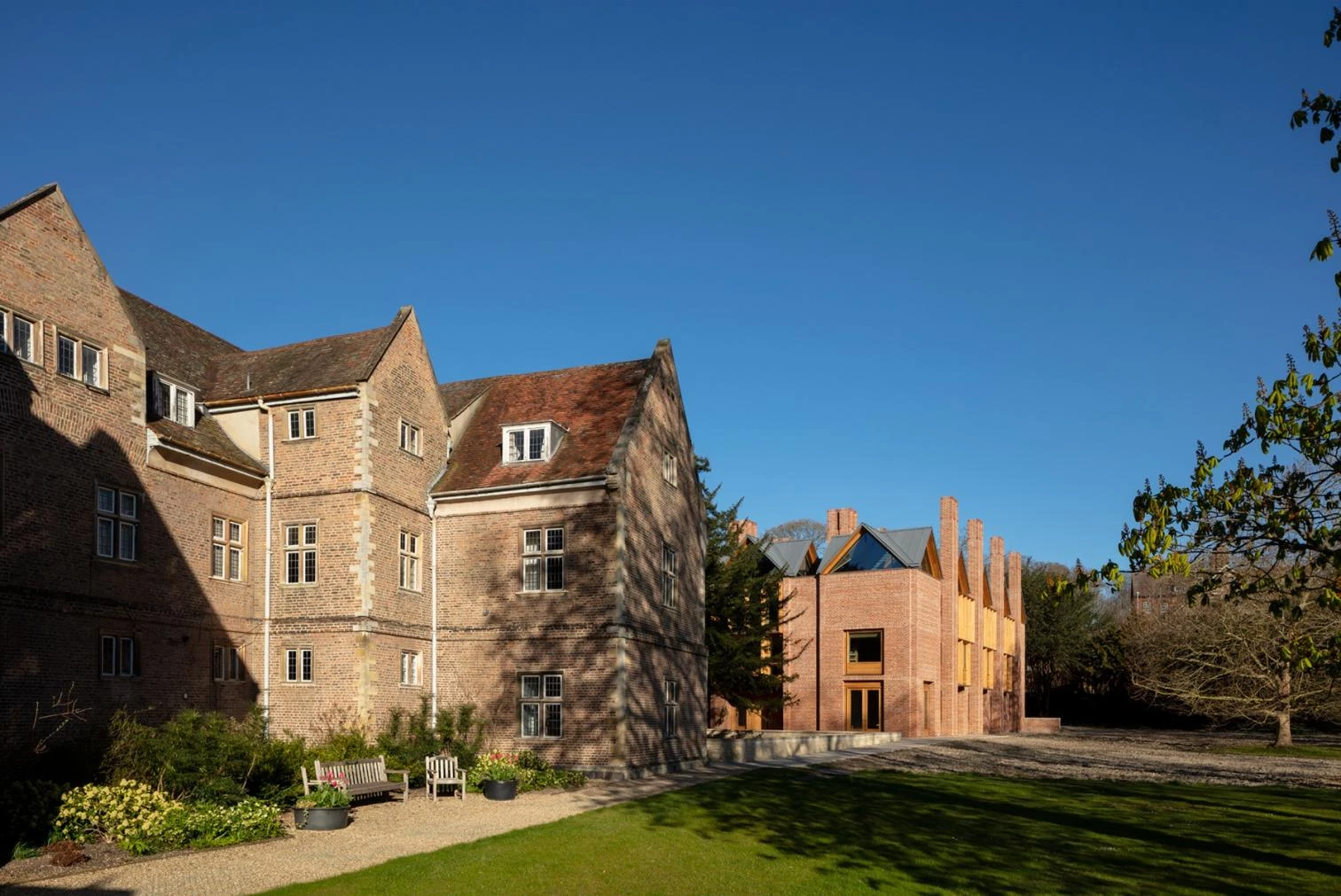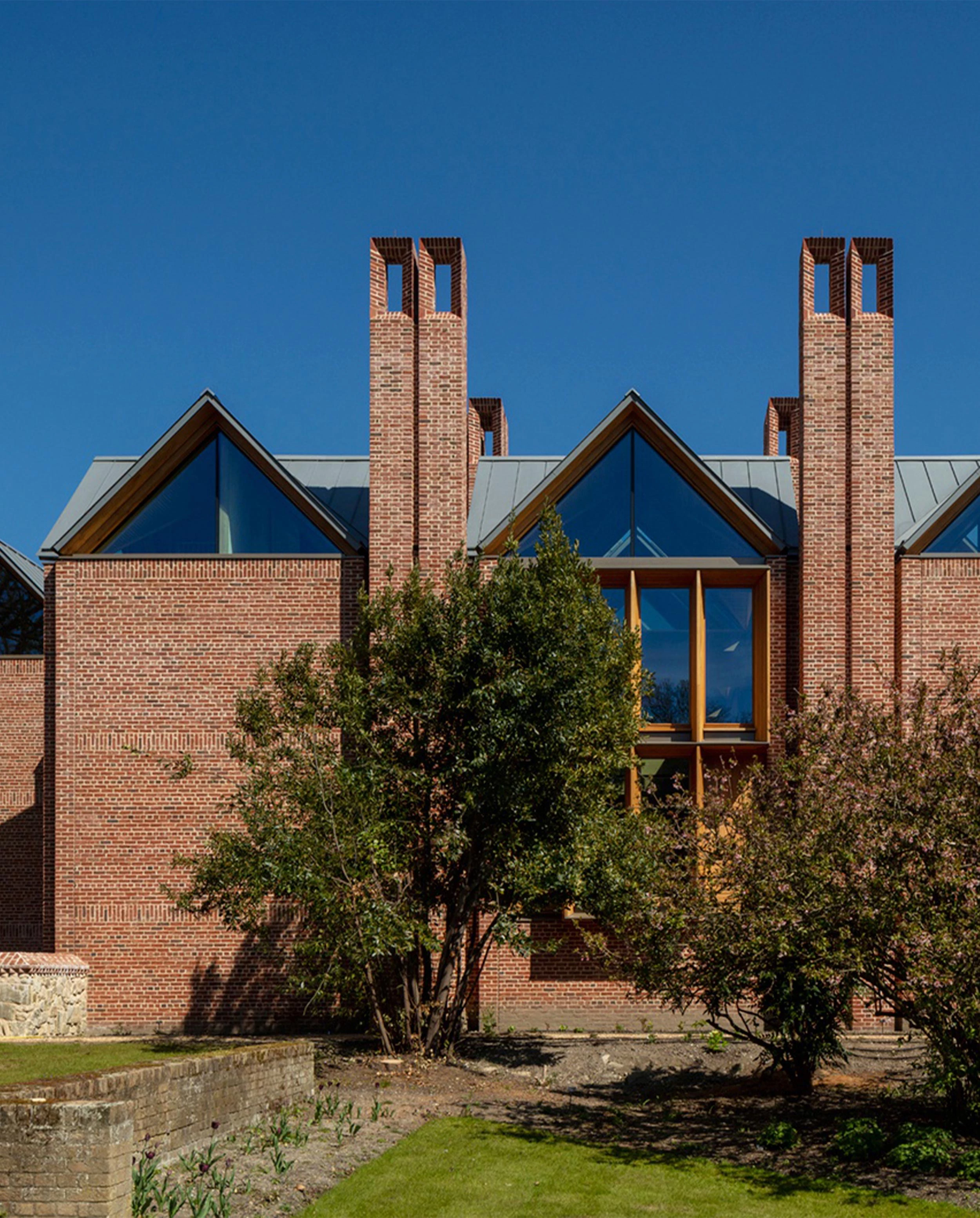 A work of the London practice of Niall McLaughlin, the new library in the historical setting of Cambridge University has for 2022 won the Stirling Prize, awarded by Royal Institute od British Architects (RIBA). The ensemble of simple brick volumes reinterprets the architecture of Magdalene College’s older buildings. Its material makeup and its form come from the surroundings, combining brick, wood, chimneys, and pitched roofs.