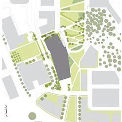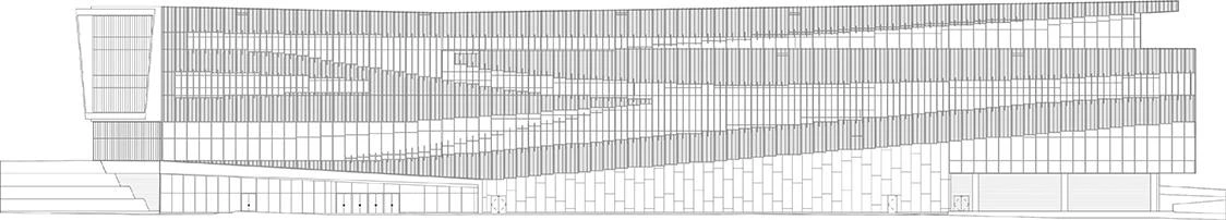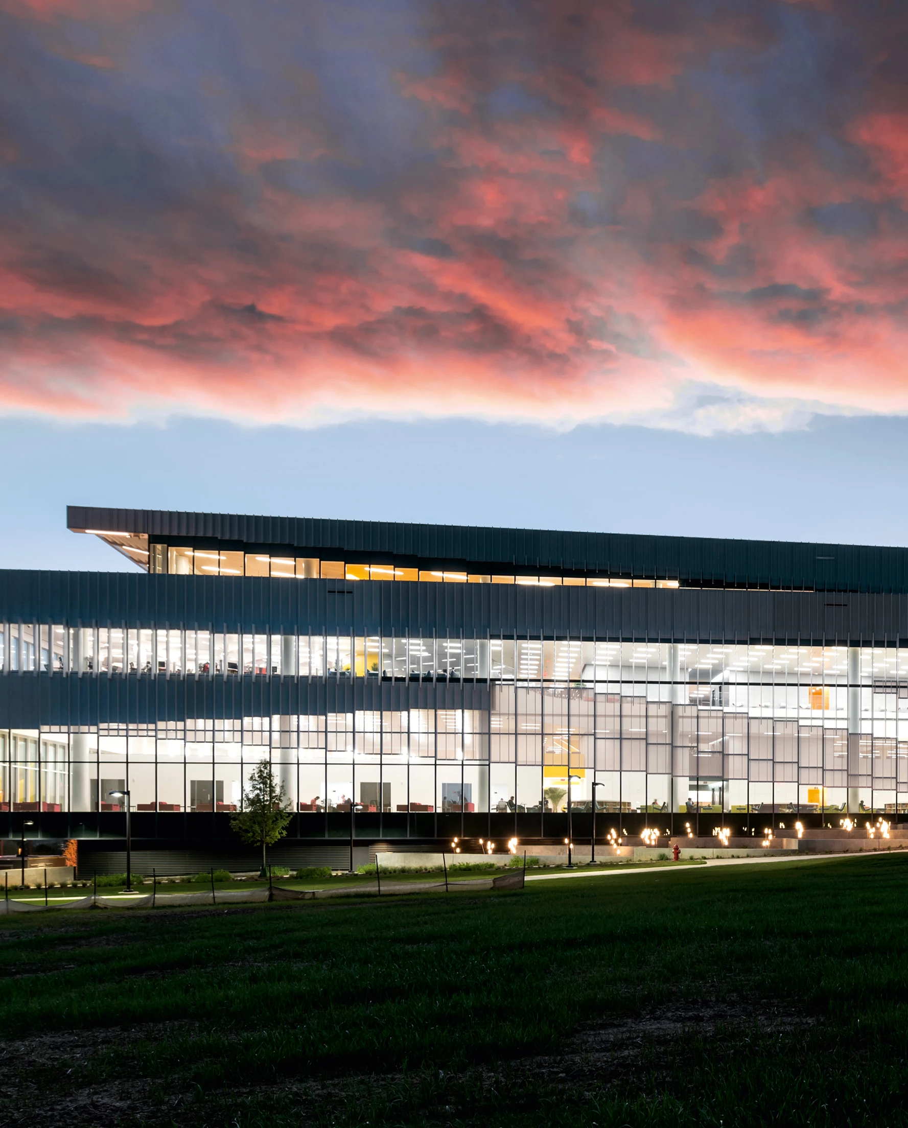 The Library redefines the use of University library spaces by balancing the existing needs with emerging technology and collaborative learning teaching methods. Generous open spaces connect all floors of the library and open stairs emphasize an interactive and social environment alongside more focused study areas. A wide variety of study and learning environments and technology-focused experimental labs go beyond the now ubiquitous model of the learning commons. ‘Disruptive’ learning spaces with colorful, dynamic furnishings exist adjacent to more traditional study rooms. This markedly contemporary building contrasts with the neo-classical character of North Carolina State University campus. The use of an automated book retrieval system allowed for two million volumes to fit in one tenth of the area needed for traditional open stacks, allowing more of the budget to be used for learning spaces. Many sustainable design features are integrated into the building, including fritted glass and a fixed external aluminum shading system that helps diminish heat gain while maximizing views, and the ceiling mounted active chilled beams and radiant panels that provide heating and cooling.