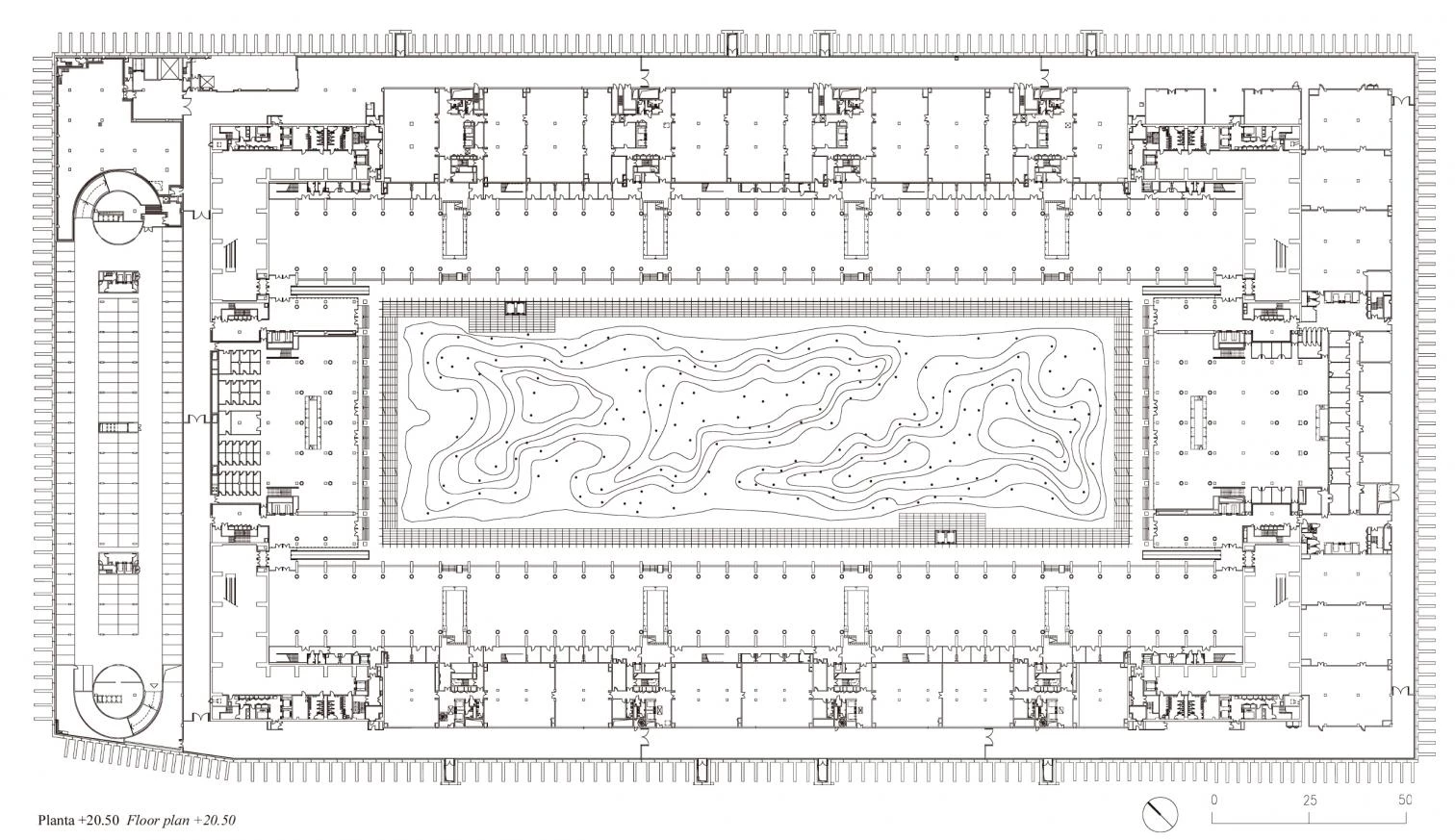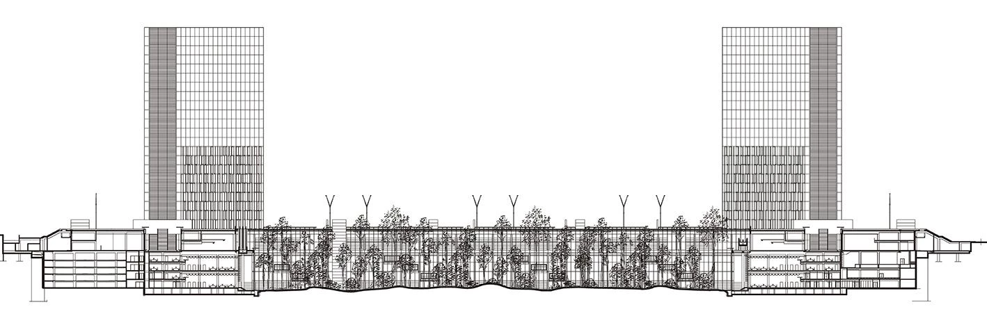 From the parvis-like courtyard of the main entrance, with its sweeping river frontage, the general reception area is situated between the Seine and the central garden. Arriving from the RER train station, people head for this single and all-encompassing area, by way of the garden, using the footbridges slung between the trees. The reception and organizational area level, which is in direct contact with the neighbourhood streets, is crucial to the intense nature of the public life of the Library de France. This whole network is so structured as to lead the reader, newcomer and old hand alike, to the heart of the edifice, towards places that are protected and protective.