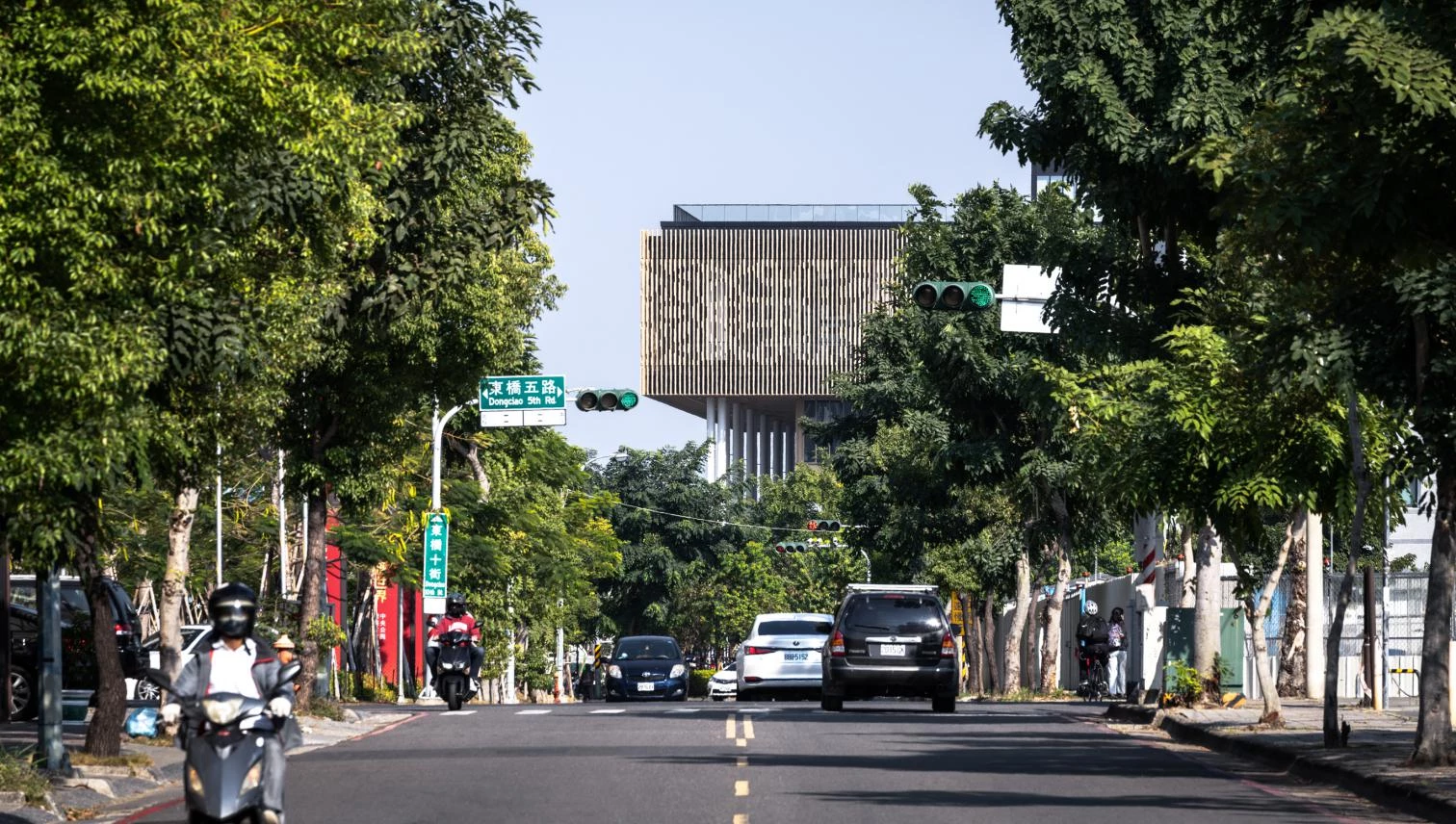 The 37,000-square-meter building for Taiwan’s oldest city presents an inverted stepped shape designed by Mecanoo, the Dutch firm headed by Francine Houben, in collaboration with the local office Mayu Architects. Held up by quartets of slender white columns, the cantilevered crown has a decorative aluminum cladding with flower patterns motifs forming lattices.