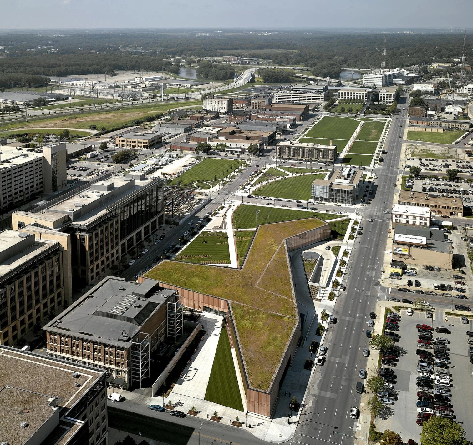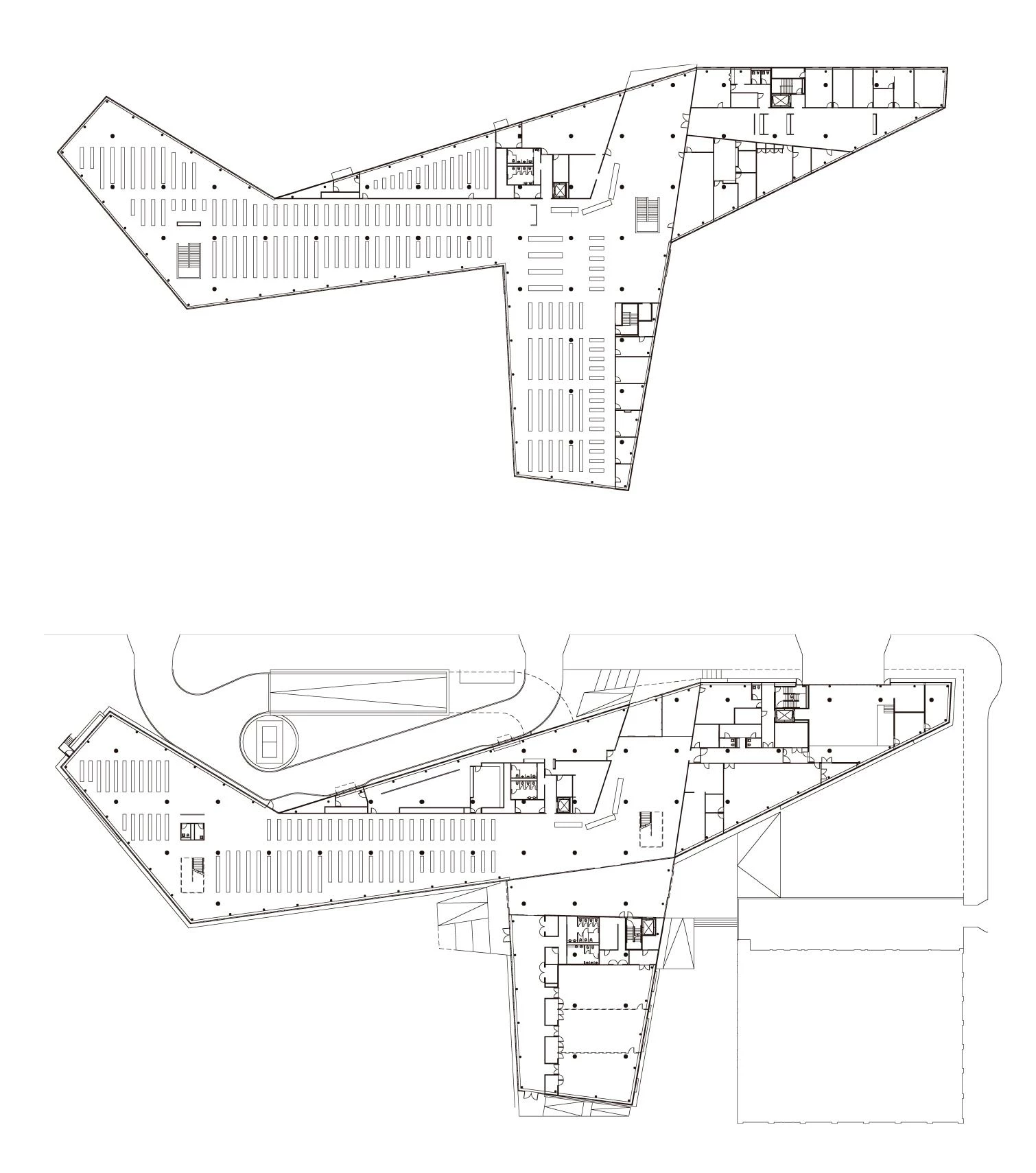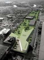 The library forms an integral part of the new Des Moines Western Gateway Park. This area of the city is currently undergoing extensive redevelopment and the new library and park will become a centrepiece for the urban renewal of Des Moines. Located at the east end of the park, the new library acts as a link between downtown Des Moines and the park. On the one hand, it responds to the city block, but at the same time it stretches out into the parkland, floating in the surrounding landscape, thus creating outside spaces of different character while conveying to the visitor the feeling of sitting in the park while reading a book. The Gateway Gallery, a flexible and multipurpose activity space, forms part of a public route through the building, reinforcing its bridging character between the park and the city and blending the threshold between library and park. The roof is covered with a green carpet that gives the project a certain sense of continuity with the park when it is seen from the adjacent blocks. The roof not only reduces the visual impact of the new structure, but also has an important environmental role, avoiding the problems that channelling water through a roof of these dimensions would convey. Furthermore, by increasing the building’s mass it is possible to prevent the sudden changes in temperature that increase the price of climate control. The stacks are arranged in such a way that one will always be able to see into the park from the interior, creating a sense of openness and transparency. In addition to book stacks, the library also accommodates education facilities, children’s play areas and a conference wing with a cafe, reinforcing the public nature of the building and providing the city with a platform for public life.