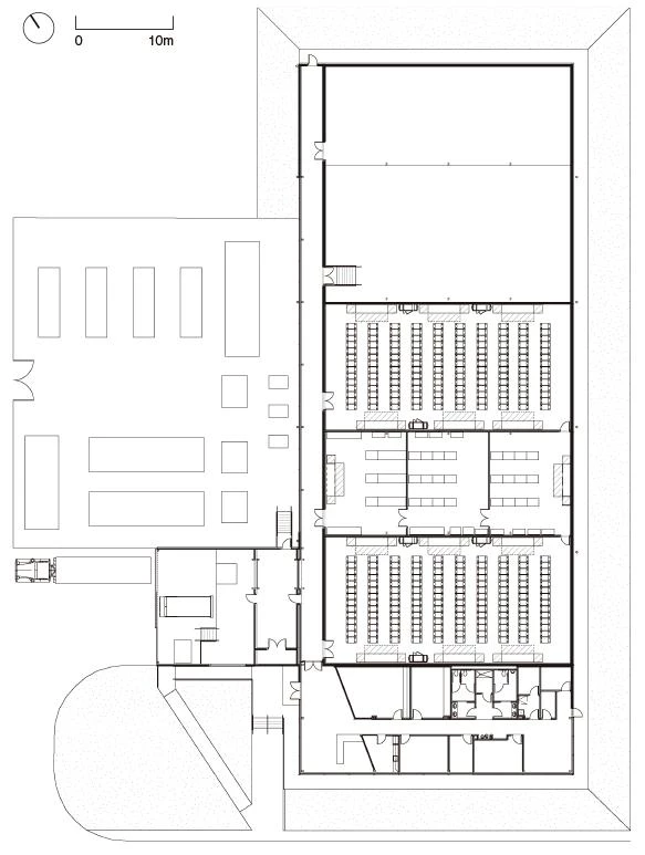 Located on a 32-acre site 5 miles south of Rice University’s main complex, the Rice Library Service Center (RLSC) is located in the latter half and was the first structure built on the property, introducing a palette of materials and textures as an evolving reference for future buildings on the site. The second building added to the site is the Rice Data Center (RDC).