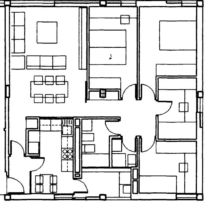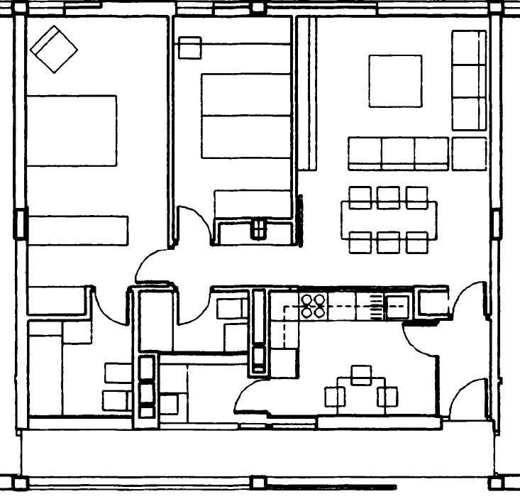 Regulations and economic restrictions which determine social housing are counterbalanced by the opportunity that these projects offer – generally of a great volume and through municipal commission – to intervene in the periphery of the city and to define the urban space. In Berriozar, a small village on the outskirts of Pamplona, the commission to build 103 social dwellings next to the highway has forced to review the existing master plan to provide a plot that is neither city nor country with an urban contour. As part of a larger T-shaped unit, the residential block crosses the road that constitutes the main axis of the new urban development, forming a visual screen that at the same time conceals an adjacent supermarket and creates a public square.
